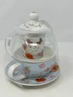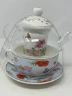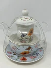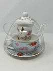 Elevate your tea time with this exquisite GRACE TEAWARE Floral Teapot Set. This set comes with a teapot infuser, teacup, and saucer, perfect for a single serving. The fine porcelain teapot is adorned with a beautiful floral pattern, while the teacup and saucer feature a glossy finish. Crafted using art pottery production style, this set is both functional and decorative. The teapot has a capacity of 8 oz and a height of 6”, making it perfect for brewing your favorite tea. This set is machine washable and dishwasher safe, making it easy to clean and maintain. Bring a touch of spring to your tea time with this beautiful set.