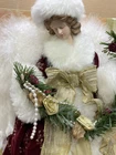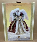 Absolutely beautiful tree topper angel. Hard to find well crafted angel with velvet and feather wings. Original box has some wear and torn areas from storage Please see photos for most accurate details before purchasing Thanks