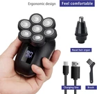 About this item ★ MULTIFUNCTIONAL ★ UPTARD 7D electric razor for men is a premium multifunctional shaver to provide the best results for various personal care needs with five detachable accessories. Our rechargeable electric shaving razor for men can work as a beard trimmer, stubble trimmer, ear and nose hair trimmer, even a body or leg shaver for women. Thanks to the anti-pinch system, our grooming kit for men maintains stable power operations and prevents hair pinch for a comfortable shaving experience. ★ LATEST UPGRADED VERSION★UPTARD 7D floating rotary bald head shaver is a professional electric trimmer set for men. With the 7 pivot and double-ring durable and sturdy blades, a greater contact area is provided which allows an efficient and faster shaving experience. Besides, ultra flexing blades with ergonomic design offer a better trimming experience in the jaw and neck fits contours of the face with the multi-directional working feature. ★ WATER RESISTANT ★ UPTARD electric razor grooming kit has a washable and shower friendly feature with IPX5 water resistance technology which allows it to use for comfortable dry shaving or refreshing wet shaving, with and without shaving cream, gel or foam. Our electric head shavers for men are easy to disassemble and easy to clean which can directly be cleaned under the running water so they will be ready for the next usage. ★SPECIAL FEATURES ★ Our well-designed, multifunctional beard trimmer for men has unique features. You will get 90 minutes runtime with 2 hours fully charged shaver. You can see the battery status via LCD display. It is USB rechargeable which makes it perfect for home and travel usage. 5 seconds long press will lock the shaver. With multifunctionality, safety and professional shaving performance, UPTARD bald head electric shaving razor is a great gift for husband, boyfriend, dad and others! ★WHAT YOU GET ★ UPTARD 7D 5 in 1 electric hair trimmer for men included all you need for the best shaving experience. It includes 1 x main shaver body, 1 x hair trimmer, 1 x facial cleaning brush, 1 x ear/nose hair trimmer, 1 x facial massage head, 3 x limit combs ( 3 mm, 5 mm, 7 mm ), 1 x USB charger cable, 1 x velvet pouch. For any questions, feel free to contact us and we will provide the best solution in 24h for you. Let’s make you shine with our premium electric shaver!