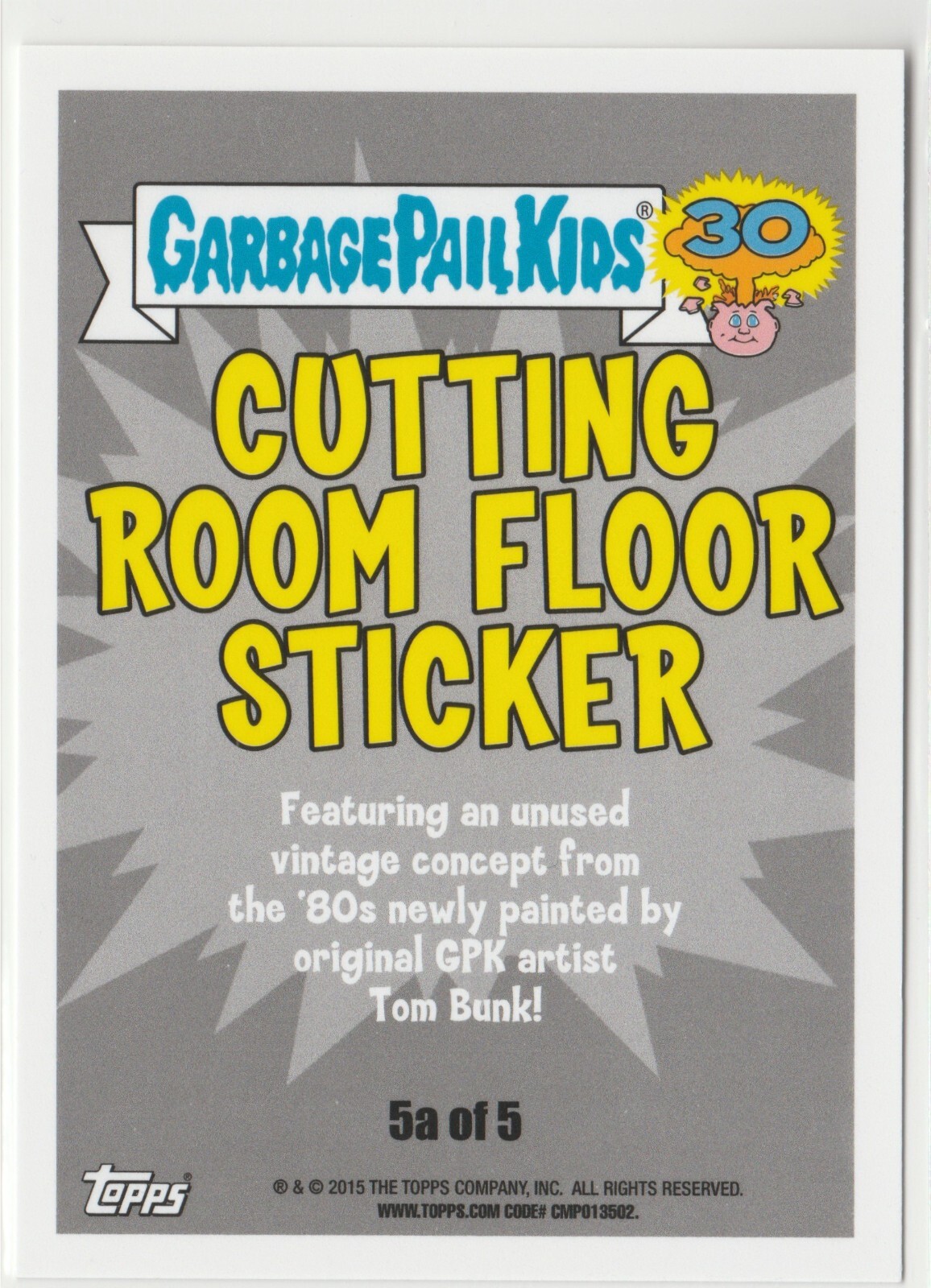 G-Rated Gene #5a of 5 Topps Garbage Pail Kids GPK 2015 30th Anniversary Series Cutting Room Floor Sticker subset personal stock photos centering of card may vary compared to listed images