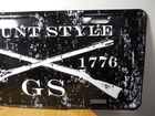 For sale is a GS Grunt Style US 1776 crossed rifles black and white novelty car tag auto plate. The tag measures 12" x 6" inches. This item was acquired at an estate sale, not my personal item and is selling as is. What you see from my photographs is what you are bidding for. I do offer combine shipping for my items, but please email me for combine shipping costs due to weight and size of items . Please keep in mind that some states charge state taxes and are the responsibility of the buyer. Thank you for your business.