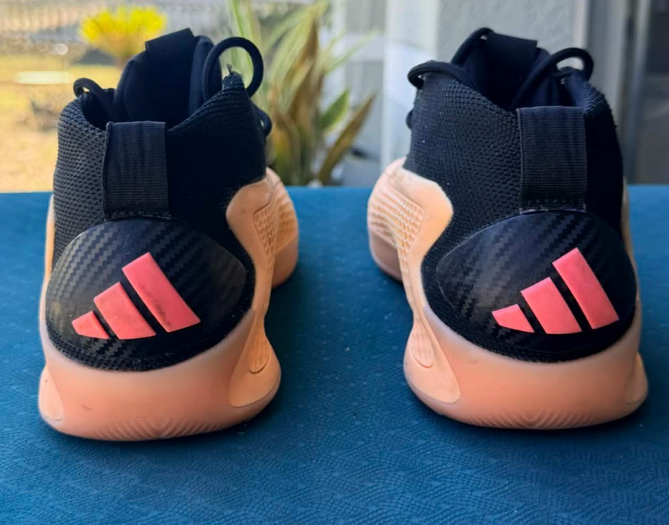 The product is a pair of GS Size 4y Adidas Anthony Edwards AE1 J sneakers in the color orange, featuring a round toe, lace-up closure, and mid-top shoe shaft style. These sneakers are designed for activewear and casual occasions, with a rubber outsole for traction and comfort. The upper material is synthetic, with a foam insole for added comfort, making them ideal for basketball and other athletic activities. The shoes also include the Adidas logo as accents, embodying a sporty theme perfect for young boys who love to be active.
