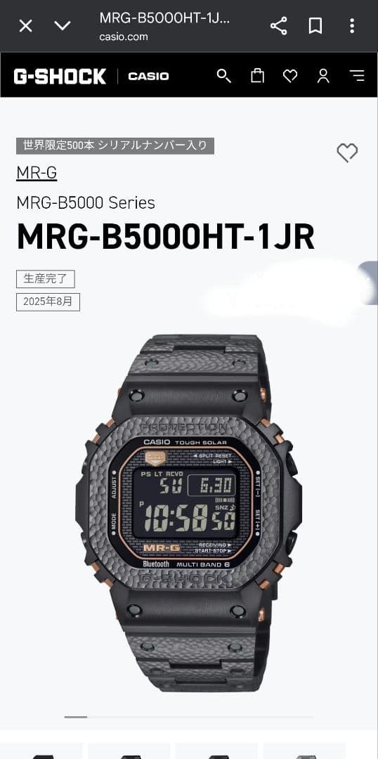 * Description All my products are 100% Authentic. Please feel free to contact us if you have any question. 💎G-SHOCK MR-G Tsuiki MRG-B5000HT-1JR — The Ultimate Model, Limited to 500 Pieces Worldwide💎 👑 The symbol of the MR-G series, the “Tsuiki” finish embodies master craftsmanship. A special specification where titanium material is meticulously hammered, stroke by stroke, using the traditional “Tsuiki” technique. The interplay of light and shadow between mirrored surfaces and textured relief creates a truly unique presence. ⚙️ Premium Titanium × DLC Coating! DLC (Diamond-Like Carbon) coating on the titanium case achieves both exceptional wear resistance and aesthetic appeal. A deep black and violet-blue gradient creates an overwhelming sense of luxury. 🌏 Worldwide Limited Edition of 500 Pieces with Engraved Serial Number! A supremely rare model, featuring a limited serial number, coveted by collectors worldwide. Condition: Brand new, unused, with price tag , purchased through official domestic channels. 🕰️ Supreme Durability via MR-G-Specific Construction! Boasts ultimate shock resistance with a high-strength titanium case and sapphire crystal. Bluetooth connectivity enables smartphone pairing. A precise and luxurious timepiece. 🎁 Complete set with all accessories! Includes dedicated case, instruction manual, model-numbered outer box, price tag, and all original accessories. The perfect collector's specification for gifting, storage, or display. ⚡ The fusion of traditional craftsmanship and cutting-edge technology – G-SHOCK MR-G's pinnacle of beauty and strength ⚡ * Shipping We ship using FedEx, DHL and Japan Post. * Payment We usually ship within 5~10 business days of receiving cleared payment. * International Buyers - Please Note: Import duties, taxes and charges are not included in the item price or shipping charges.These charges are the buyers responsibility.Please check with your countrys customs office to determine what these additional costs will be prior to bidding/buying. These charges are normally collected by the delivering freight (shipping) company or when you pick the item up do not confuse them for additional shipping charges. I do not mark merchandise values below value or mark items as "gifts" - US and International government regulations prohibit such behavior.