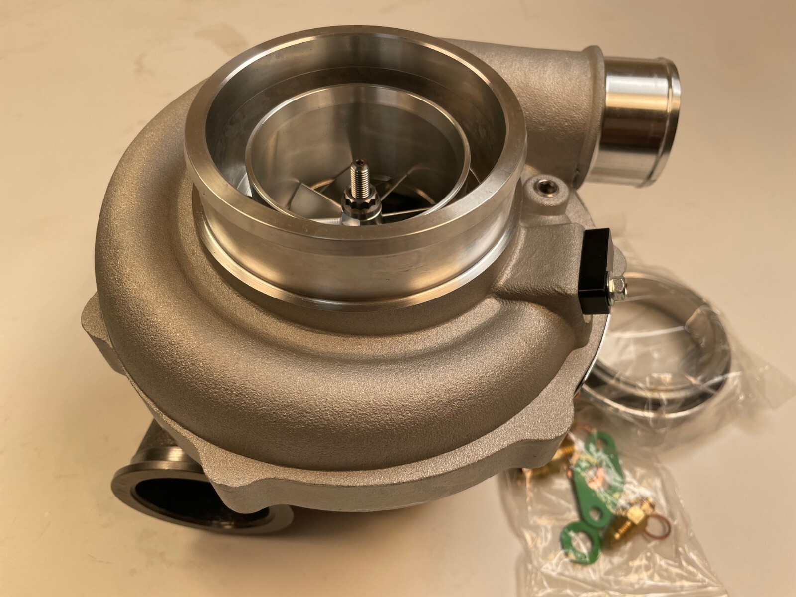 Turbo model for G-Series G35-900 2-V-Band horsepower:550-900HP Fit engine displacement 2.0-4.0L 9 blades Point billet compressor wheel bearing type:Ceramic Dual ball bearing cooled type:water and oil cooled oil restrictor & water fittings included Includes Oil Feed (1mm) Restrictor Fitting to -4AN Includes two Coolant Fittings to -6AN Includes Turbine Housing Outlet V-Band Clamps Compressor details a/r 0.72 anti-surge air inlet 4" air outlet 2.0" inducer 61.75mm exducer 76.60mm Compressor Trim: 65 Turbine details a/r .83 Turbine Housing Inlet: 3 Inch O.D. V-Band Turbine Housing Outlet: 3.55 inch (90mm)O.D. w/81mm centering ring V-Band inducer 68.00mm exducer 62.30mm Turbine Trim: 84 ****************Very Important Points******************* 1.Please make sure to open the box immediately when taking delivery, to avoid any potential issues Do NOT sign for any damaged package and report it to the couriers immediately, let the couriers sign for damage, then Contact us please! We will work with the couriers to solve shipping issues. 2.we can accepet customized order!more products you order, the price will be nice.