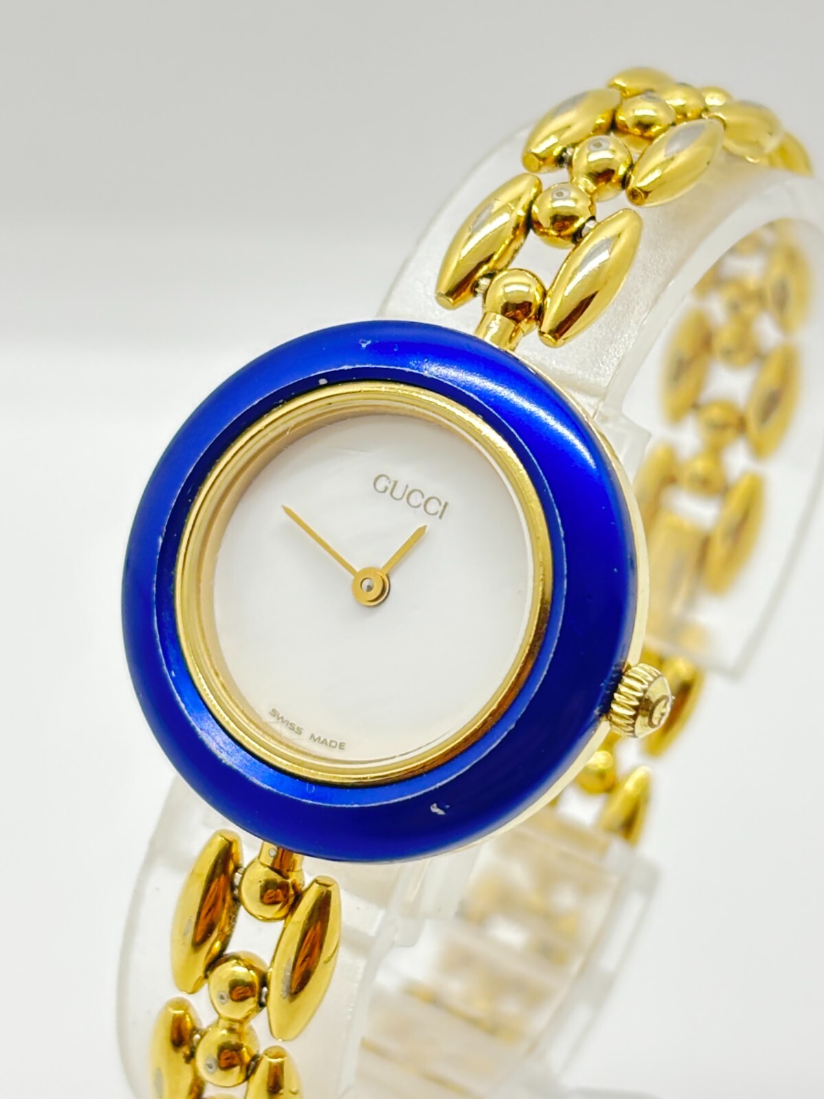 $ 818.4GUCCI 11/12 Gold Bezel White Dial Watch For Parts Repair