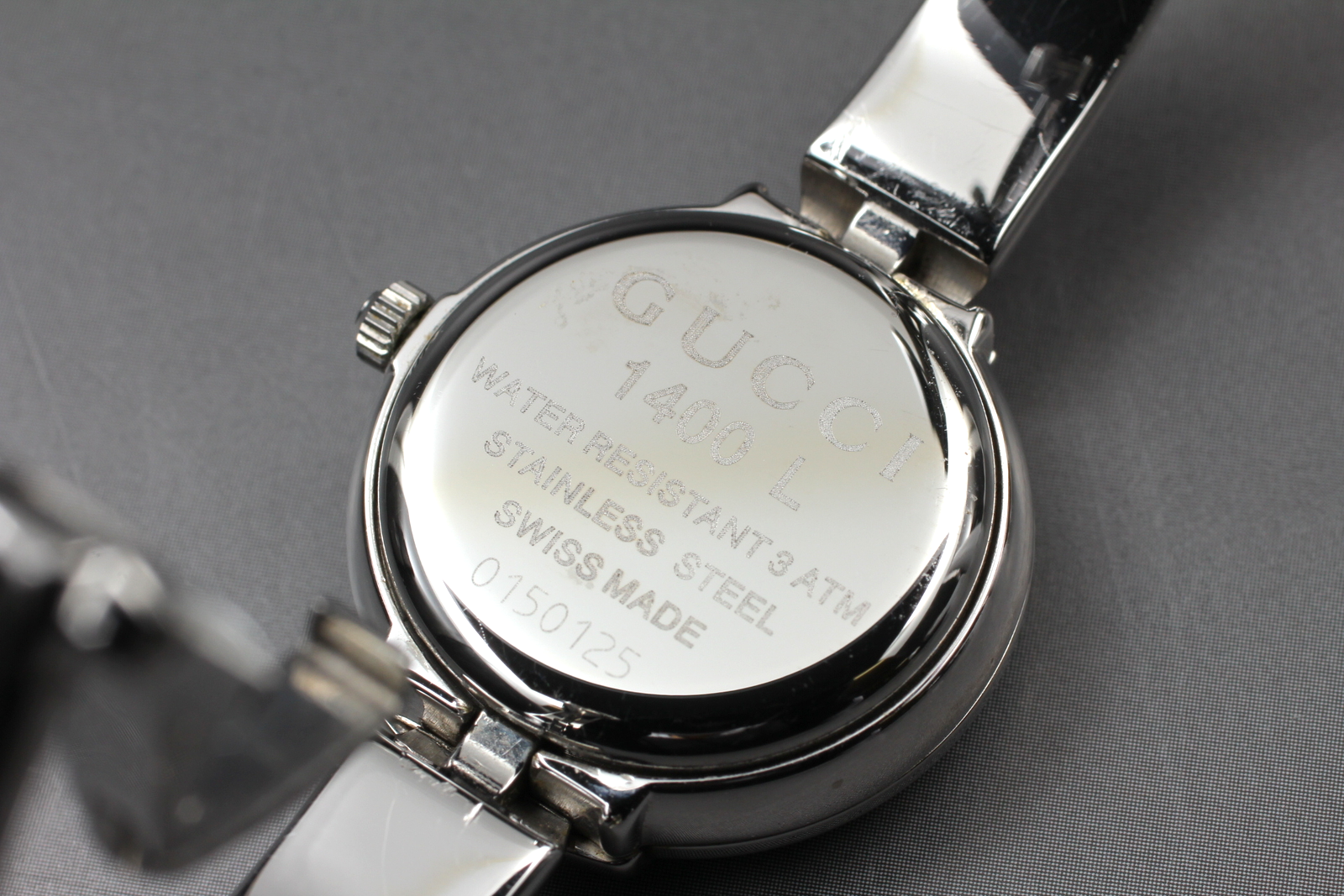 [N MINT w/Box] Vintage GUCCI 1400L Black Dial Silver Quartz Women's Watch JAPAN #17 Description Total Condition; NEAR MINT TOP MINT Pre-owned, Almost new item MINT Pre-owned, Like new NEAR MINT Pre-owned, almost no signs of use EXCELLENT+++++ Pre-owned, minimal signs of use EXECELLENT Pre-owned, heavy signs of use VERY GOOD Poor appearance Serial Number; 0150125 Appearance; Appearance is beautiful. Not suitable as a gift due to deteriorating box. tiny scuffs from normal use. It shows signs of use. *Please check photos. Functional; It works properly. The watch is currently running smoothly, but since it is a battery-powered watch, there is a possibility that it will stop during transportation. In that case, please replace the battery on your own. Please understand that we do not guarantee that this will happen. Please contact me first for return before you ship it back to me. The postage of the returned goods is a buyer burden. Bundled Items; Box,Instructions All you can see on the picture will be included in a set of a package. Above condition is based on my own opinion. Please check the photo carefully. Please feel free to contact me for any questions! Thank you. Shipping I send a product by FedEx International Priority . I attach the tracking number. Please bid it without worrying. Shipping is available from Monday to Friday. Weekends are not available because office is closed. Storage and Packing Storage Immediately after shooting, it is placed in a closed container with desiccant and stored for 24 hours and 365 days in a temperature and humidity controlled warehouse. All products, including cameras and lenses, are stored in a temperature- and humidity-controlled warehouse 24 hours a day, 365 days a year. Packing By weight and shape of each product, I use 13 kind of cushioning materials and pursue safety and weight reduction. Returns Unconditional Return Policy Customer service and satisfaction are very important to us. I have an unconditional return policy if notified within 30 days of the receipt of the item. All returned items must be the original condition. All return requests must be made within 30 days of the receipt of the item. Please contact me first for return before you ship it back to me. The postage of the returned goods is a seller burden. International Buyers Please Note: Import duties, taxes, and charges are not included in the item price or shipping cost. These charges are the buyer's responsibility. Please check with your country's customs office to determine what these additional costs will be prior to bidding or buying.