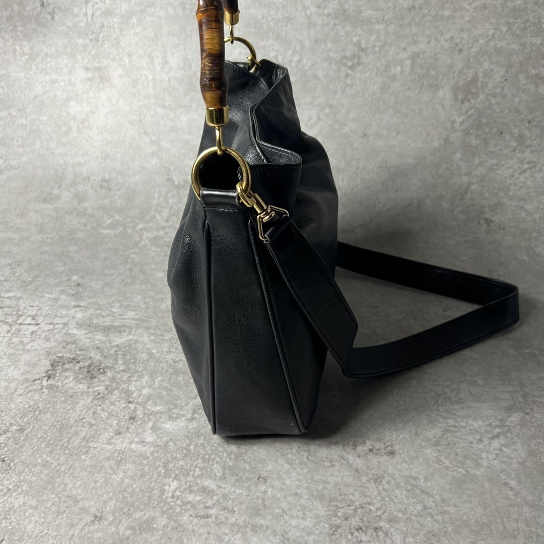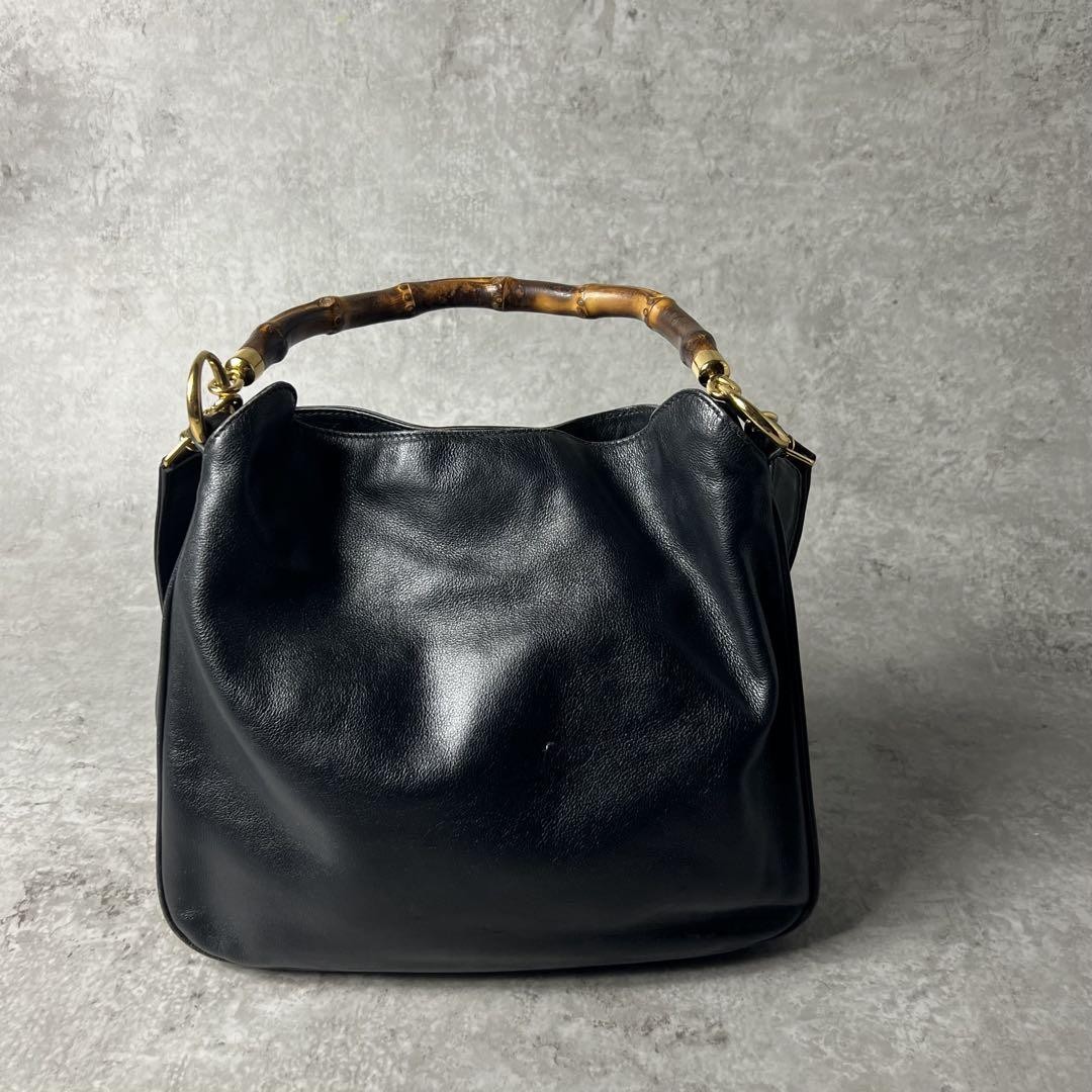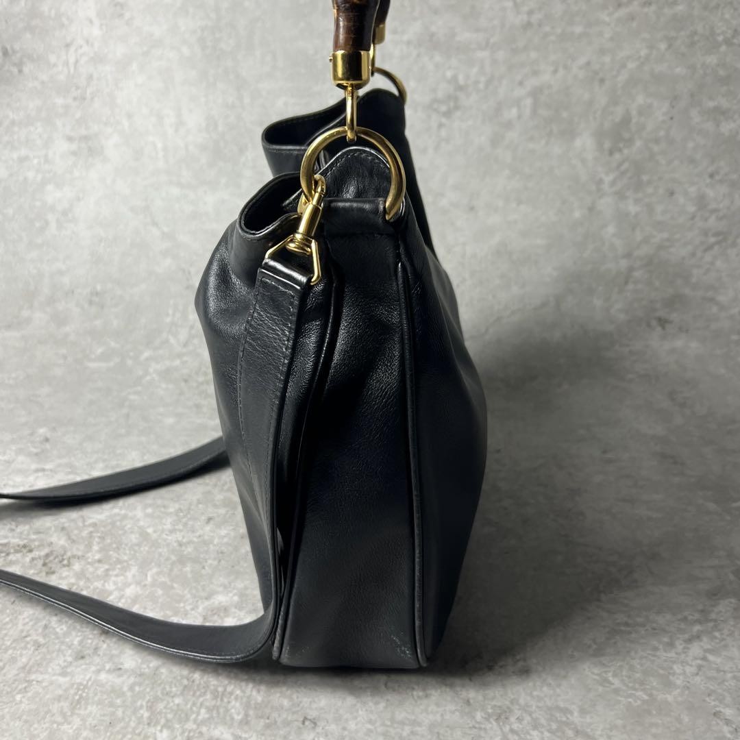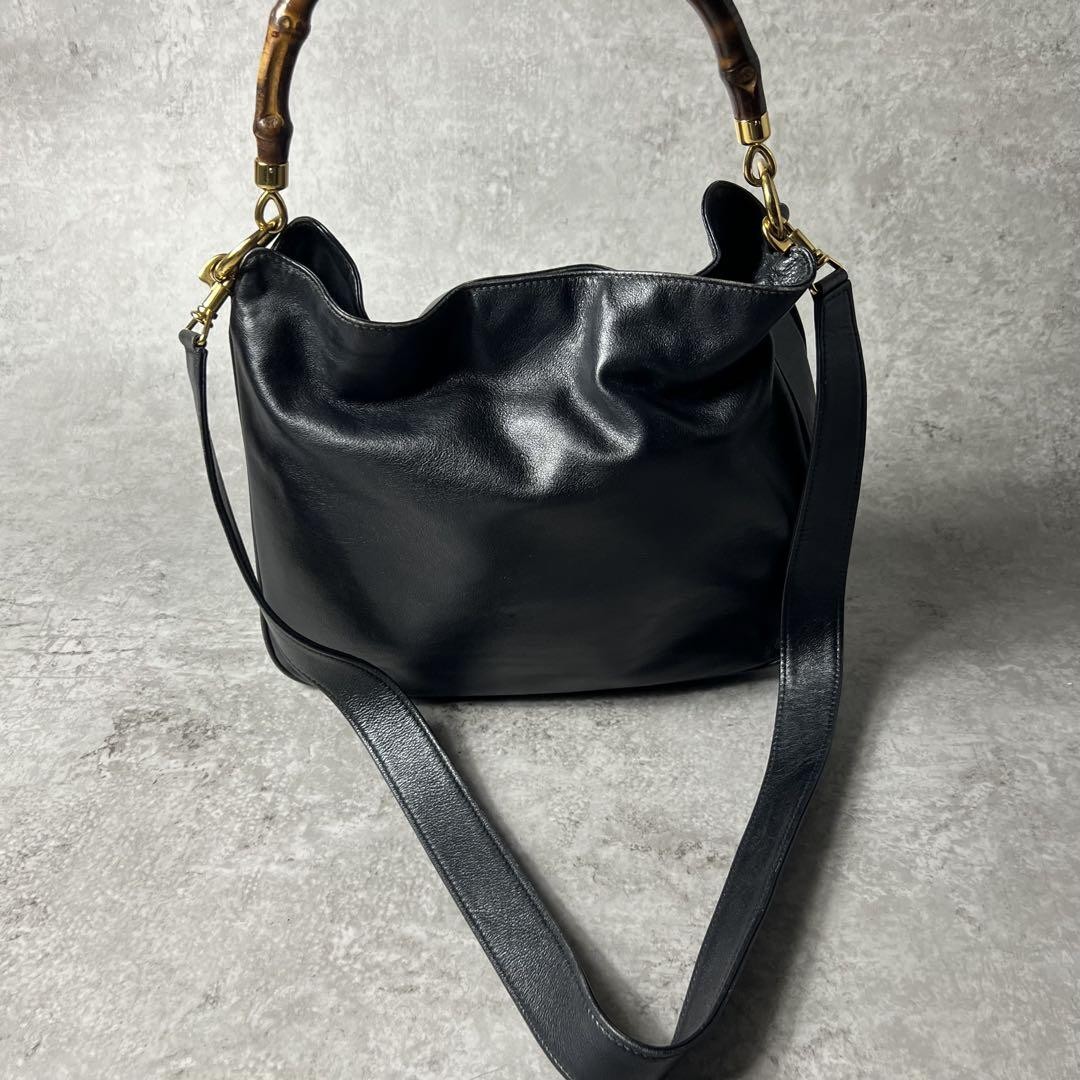 GUCCI 2Way Bamboo Handbag Shoulder Bag Black Leather DDU