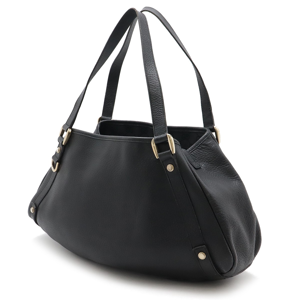 $ 237.36GUCCI Shima Suki Leather Tote Bag Black with Gold Hardware Missing Shoulder Strap