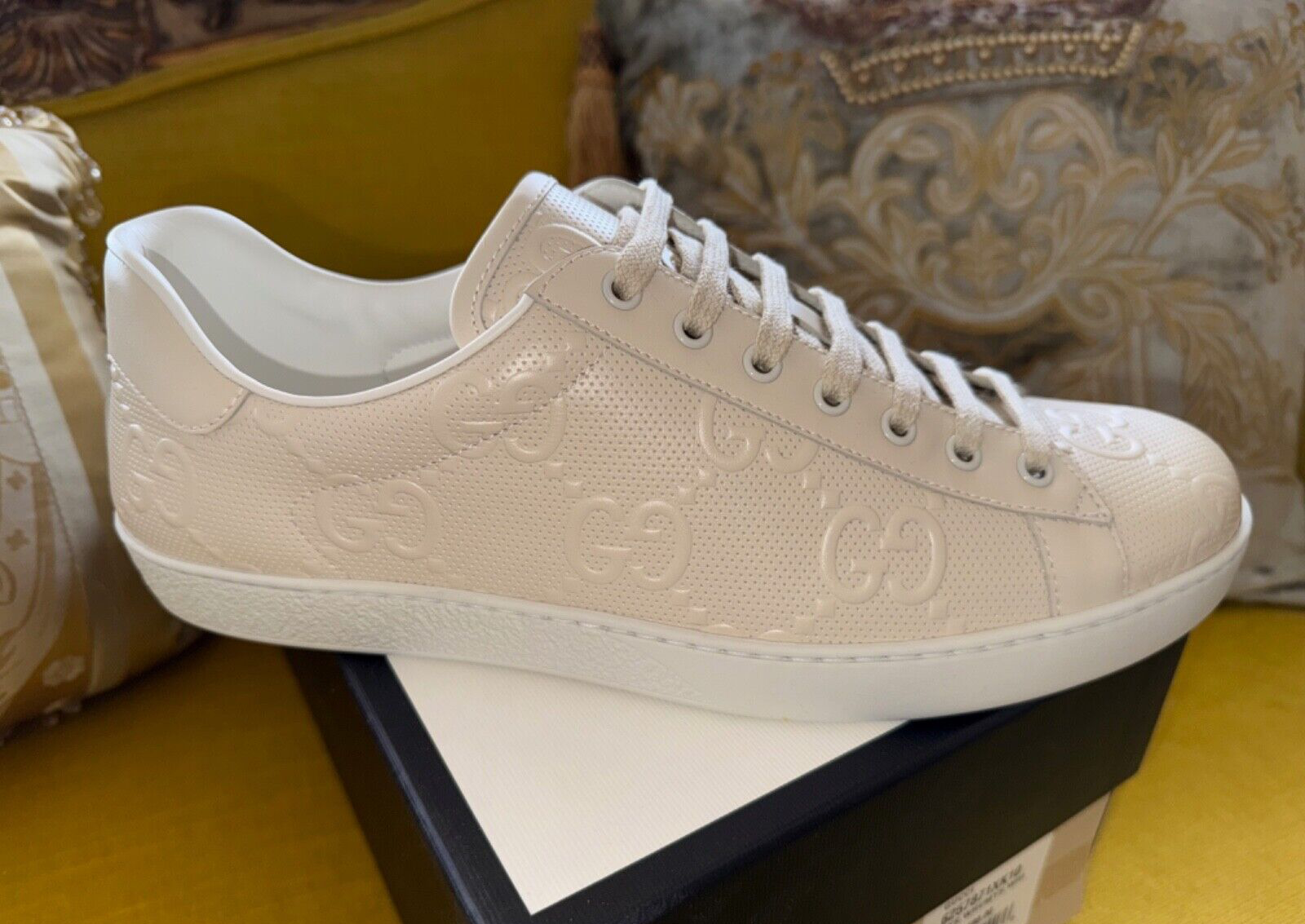 GUCCI Ace Monogram Sneakers Shoes * Tan Beige * Size US 12 / 45 * NEW * $895 * SOLD OUT * VERY RARE * Size US 12 / Euro 45 * Color: Tan / Beige * NEW w/ BOX and all Rapping's * Made In Italy * 100% Authentic