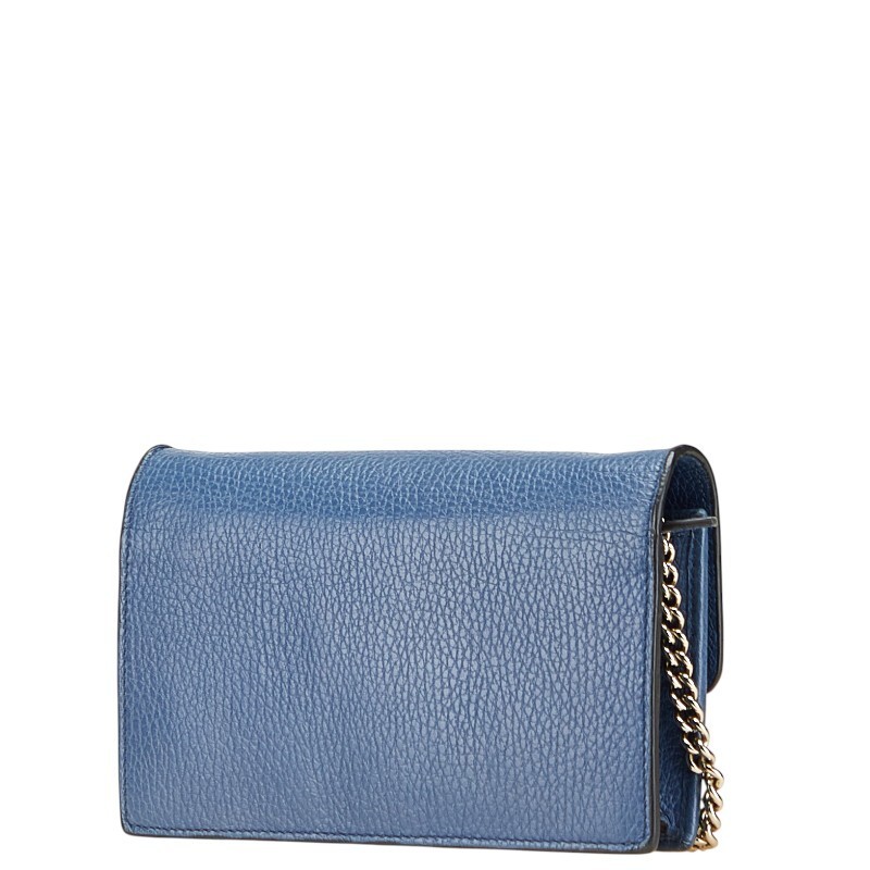 GUCCI Blue Leather G Chain Wallet Shoulder Bag for Women Pre-Owned