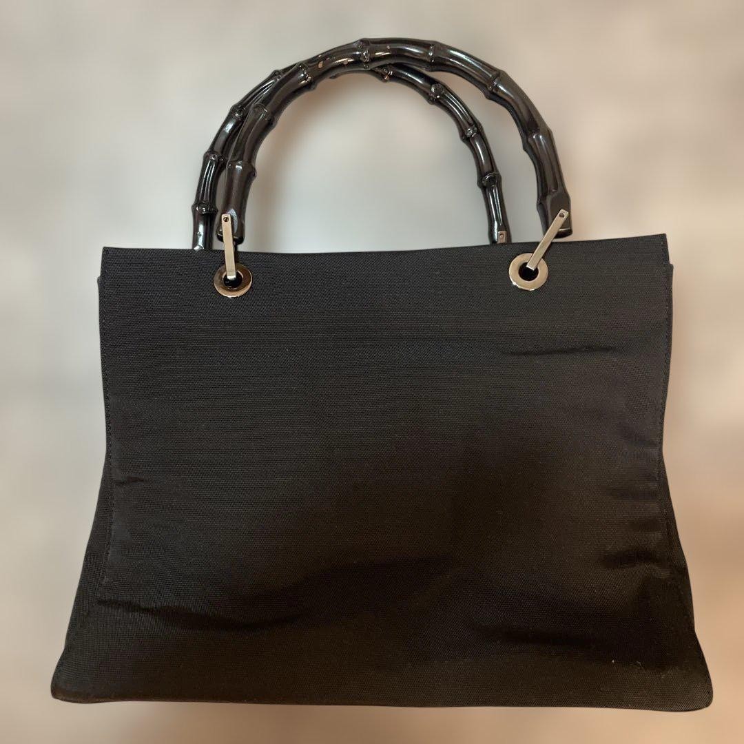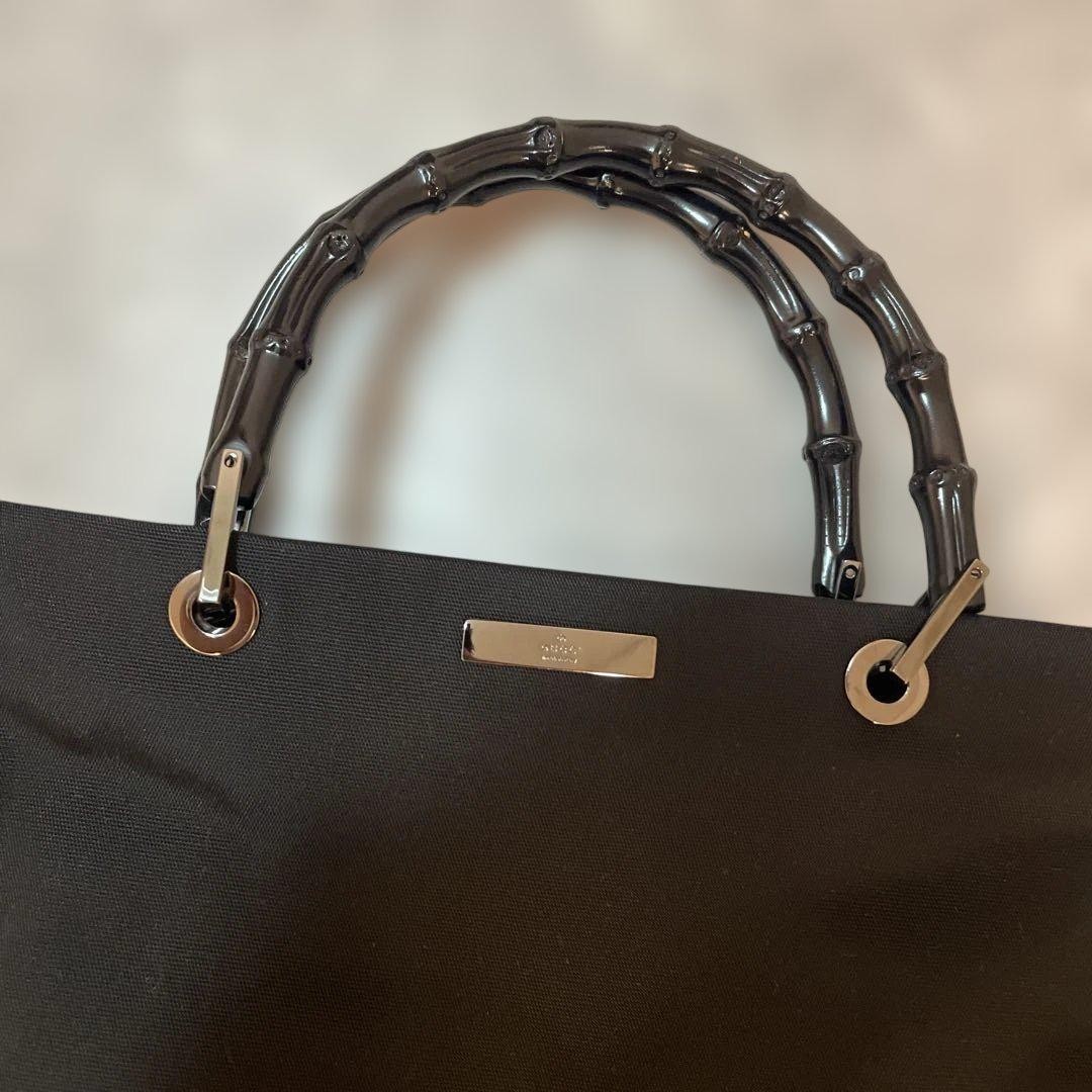 $ 107.27GUCCI Black Bamboo Nylon Shoulder Bag with Iconic Bamboo Accents
