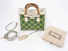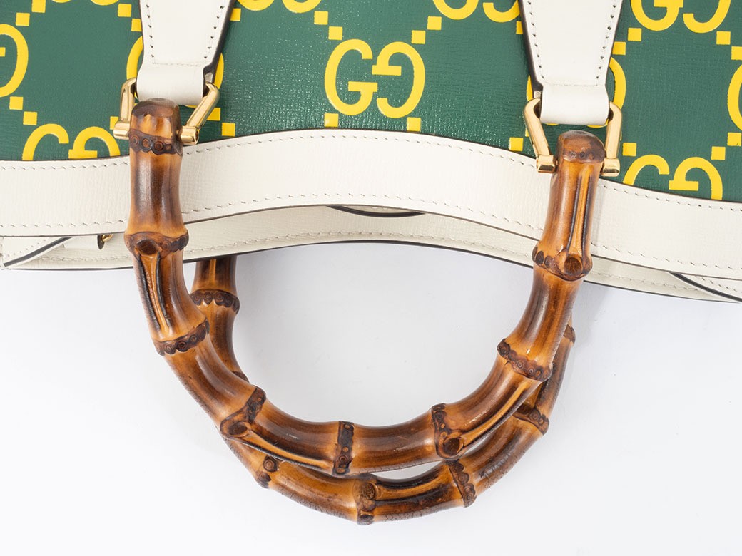 GUCCI Diana Small Shopping Hand Bag 660195 Leather Green Yellow Bamboo Tote 22