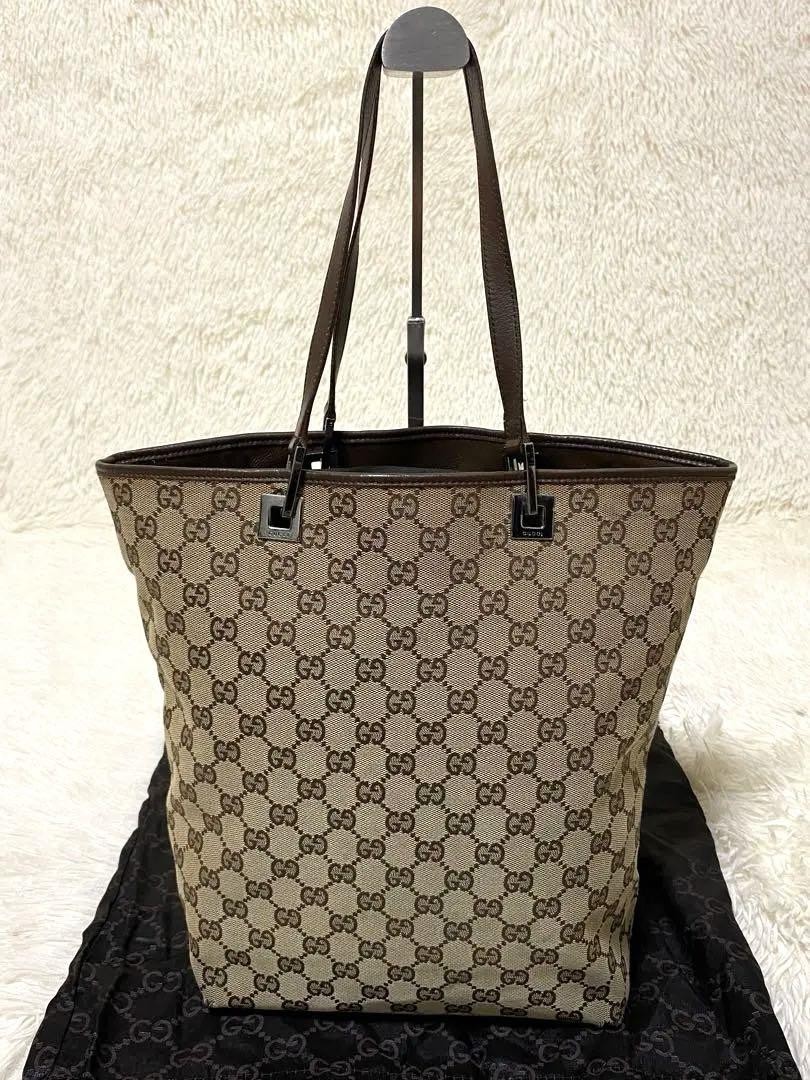 This GUCCI GG tote is absolutely stunning—the beige and brown canvas gives it such a timeless, elegant look. Perfect size for everyday use with a handy zipper pocket inside. The corners have minor wear, but it adds character. Shipping was super fast from Japan, and it came with a storage bag. Seller was super responsive—highly recommend!