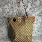 $ 78.68Gucci Vintage GG Supreme Beige Tote Bag with Gold Leather Trim 12.6x8.2x5 Inches