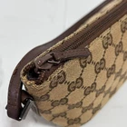 This stylish GUCCI pouch is the perfect small accessory—compact yet spacious enough for essentials. The iconic GG canvas and rich brown shade make it a timeless piece. The 40cm handle adds versatility, whether carried by hand or tucked into a larger bag. Great quality, luxurious feel, and super practical for everyday use!