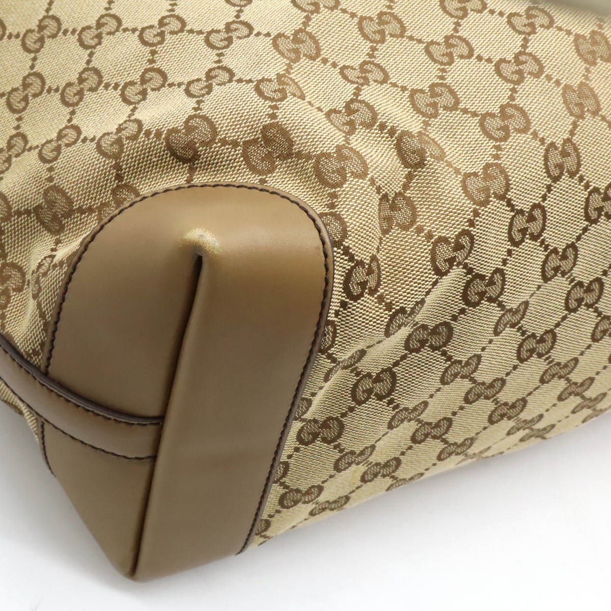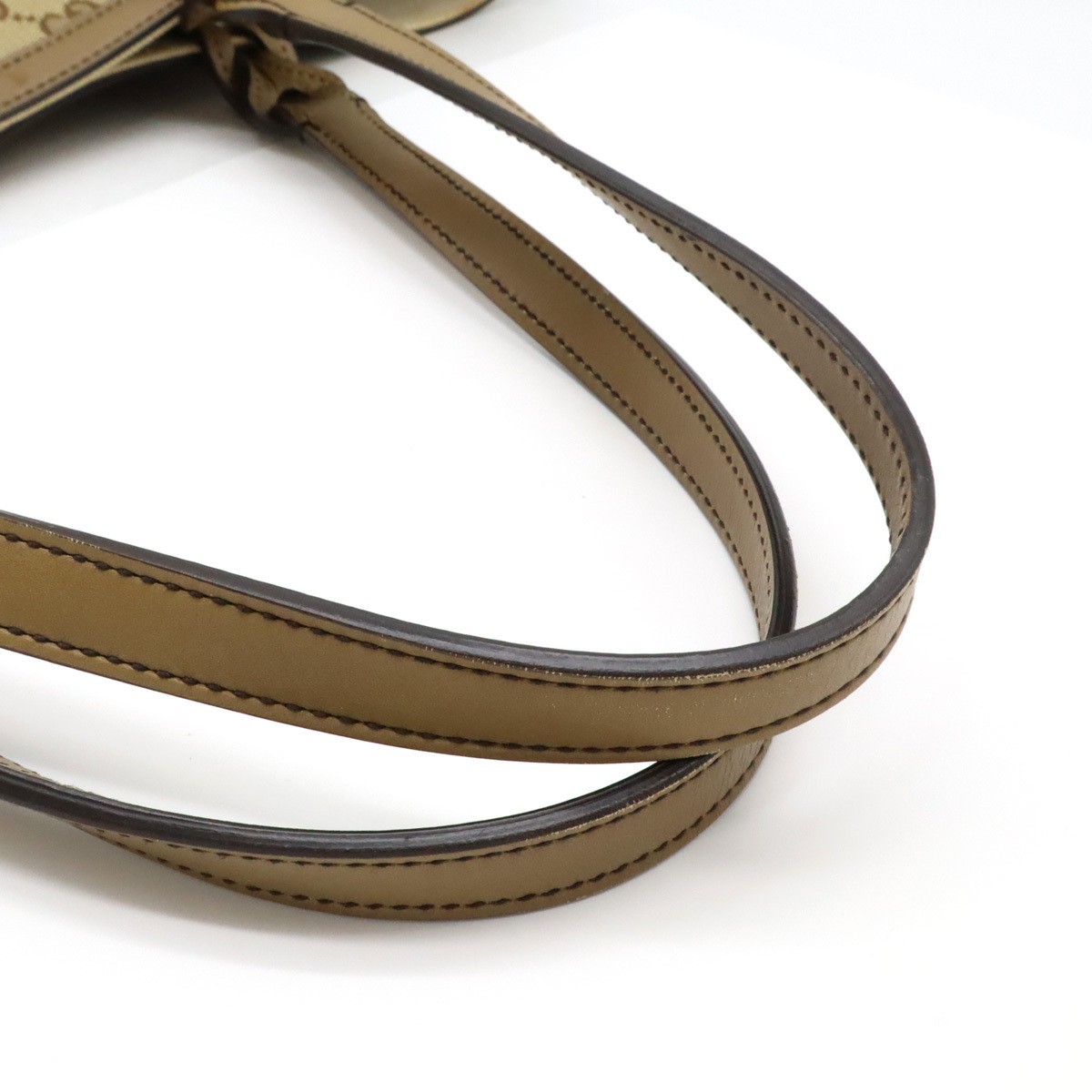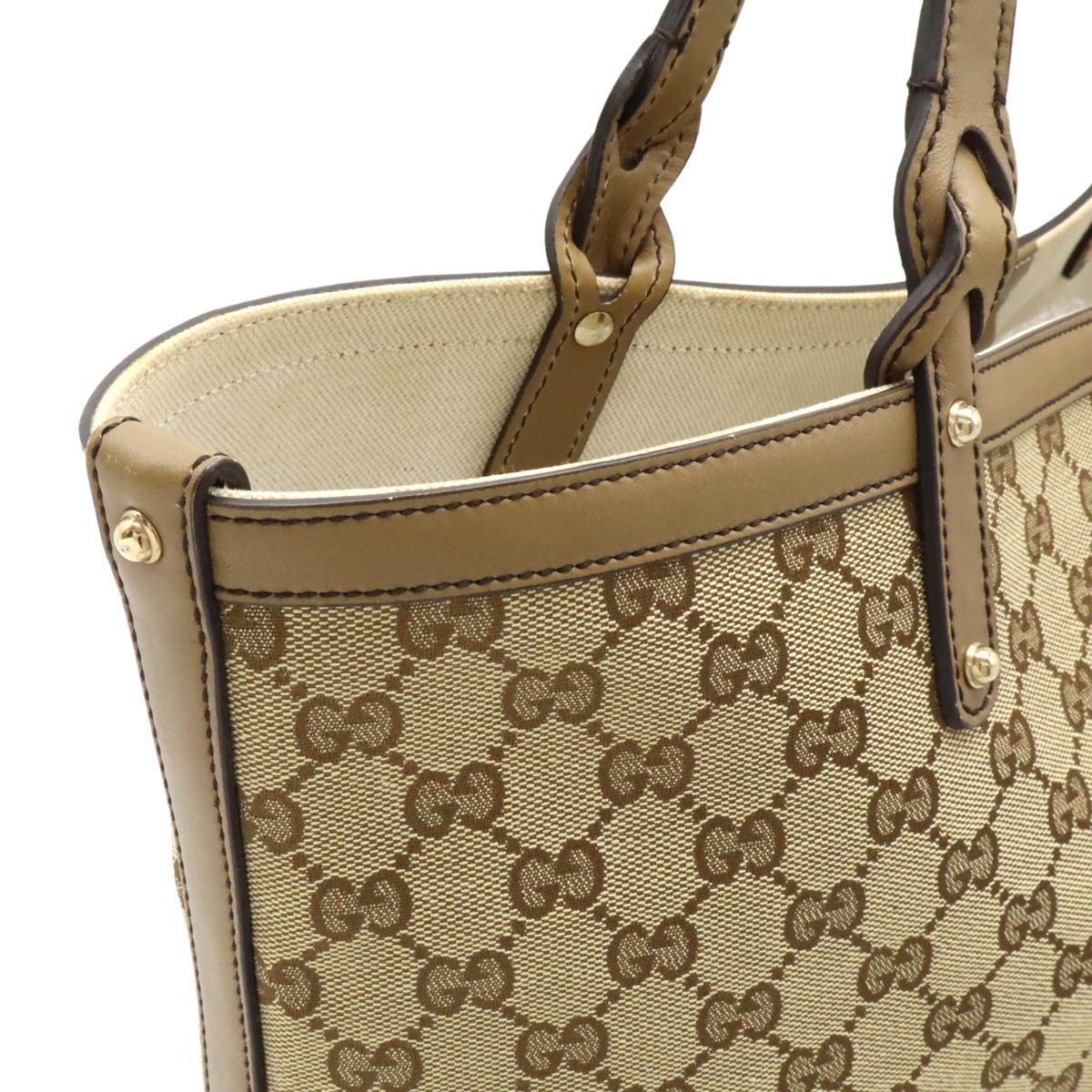 GUCCI GG Canvas Leather Tote Shoulder Bag Khaki Beige