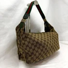 $ 133.05GUCCI Black Canvas Bamboo Handle Shoulder Bag DDU