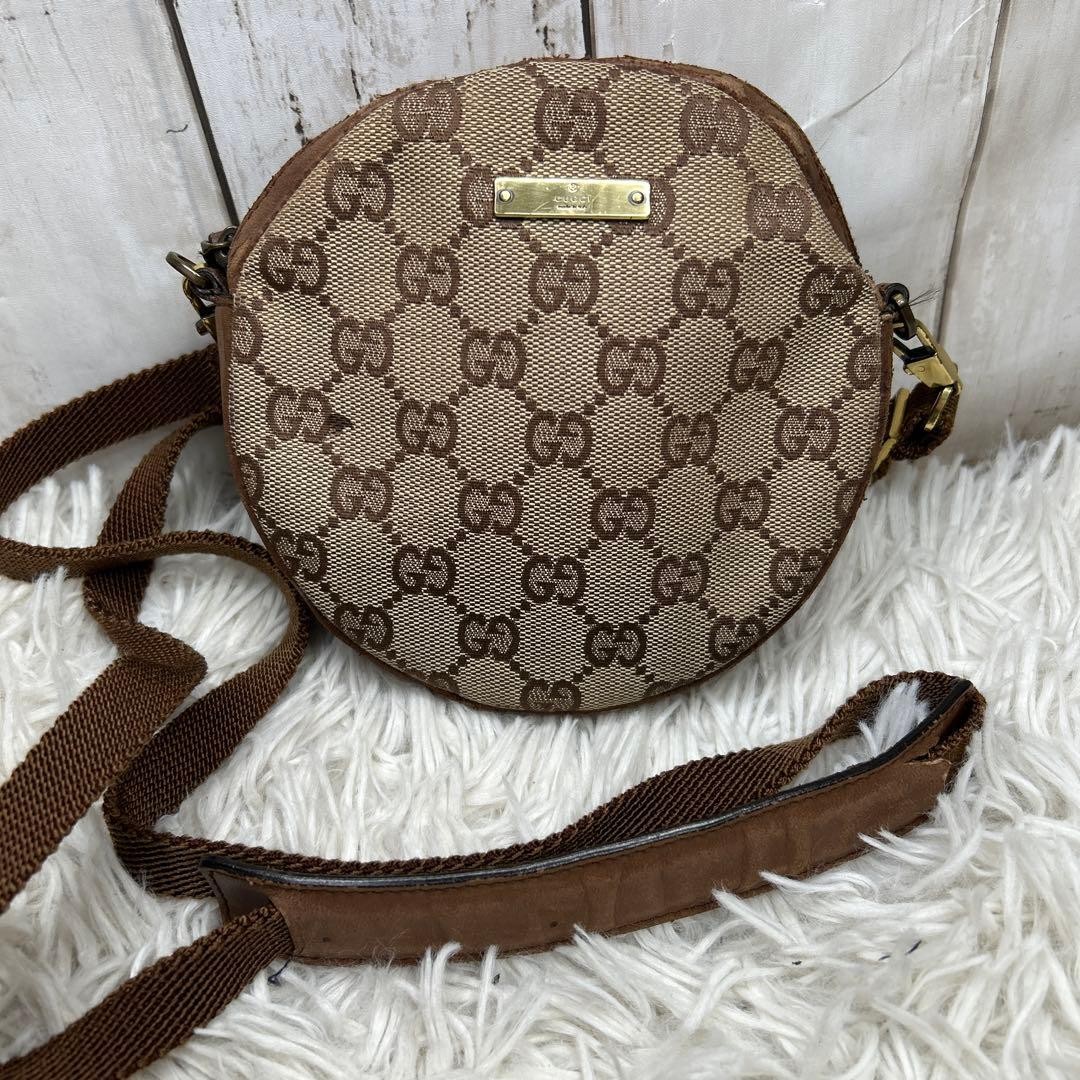 GUCCI GG Canvas Shoulder Bag Logo Pouch Leather Brown 4a