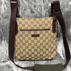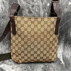 This stylish GUCCI GG shoulder bag is a must-have! The beige and brown canvas with leather accents gives it a timeless, elegant look. Roomy enough for essentials, the adjustable strap ensures a perfect fit. Minor scuffs add character—this pre-loved piece is still in great condition. Ships fast from Japan with excellent seller communication. A fantastic deal for an authentic designer bag!