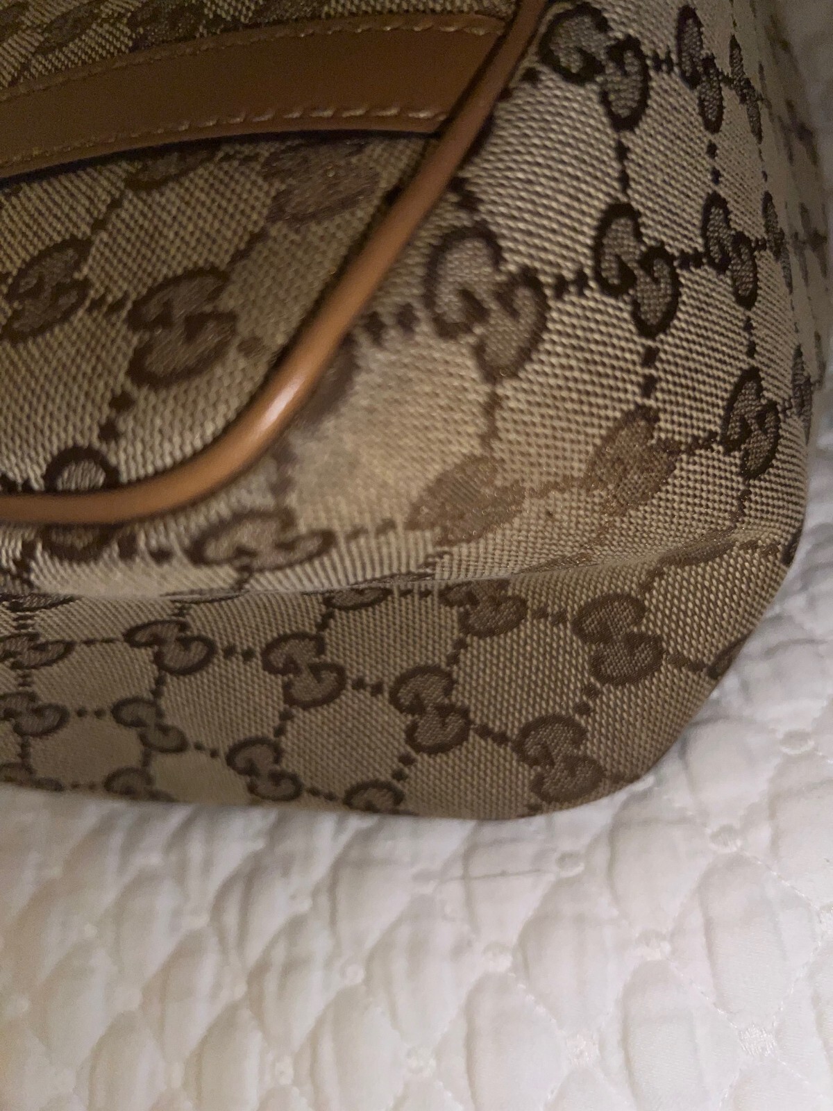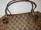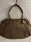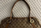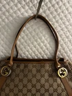 The product is a pre-owned Authenticity Gucci tote bag made of brown GG canvas with beige handles. It features a classic Gucci GG pattern and comes with a brown lining. The Gucci branding adds a touch of prestige to outfit, making it a must-have accessory. This item c omes with the original dustbag and acid free tissue paper. This item has only had one owner by one person and was used just a handful of times. It comes from a smoke-free, pet-free home. Condition: Excelent The same bag is currently selling for $700+ on other platforms, don’t miss the opportunity to own it! Product Information: Brand : GUCCI Model Number : 232963 Product : Tote Bag Accessories : None Stains/Scratches : There is one very small undetectable scratch on one corner of the bag (see image #7) . Bag has no stains. Main Color : Brown Color: Material/Fabric : Canvas Hardwear Color : Silver and Gold Size: Gusset 10.5 Height 21-24.5 Width 22-42 Handle 48 (approximately)