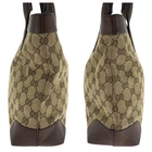 GUCCI Beige/Black Stripe Canvas Leather Tote Bag Authentic
