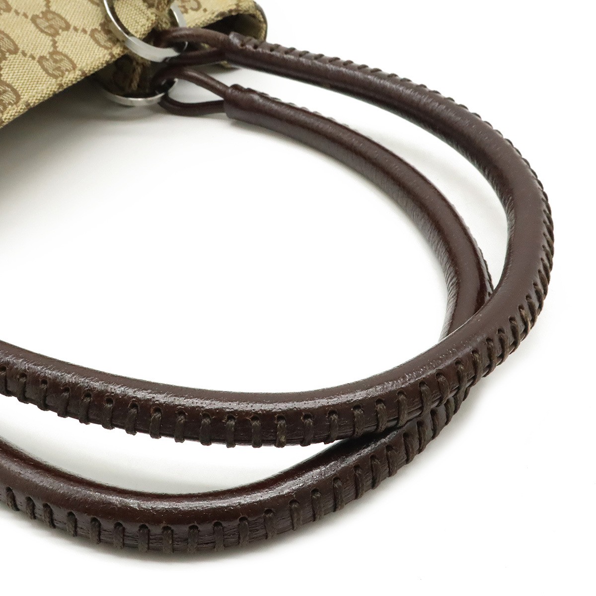 GUCCI GG Canvas Tote Bag Khaki Beige Dark Brown Silver Hardware 115007
