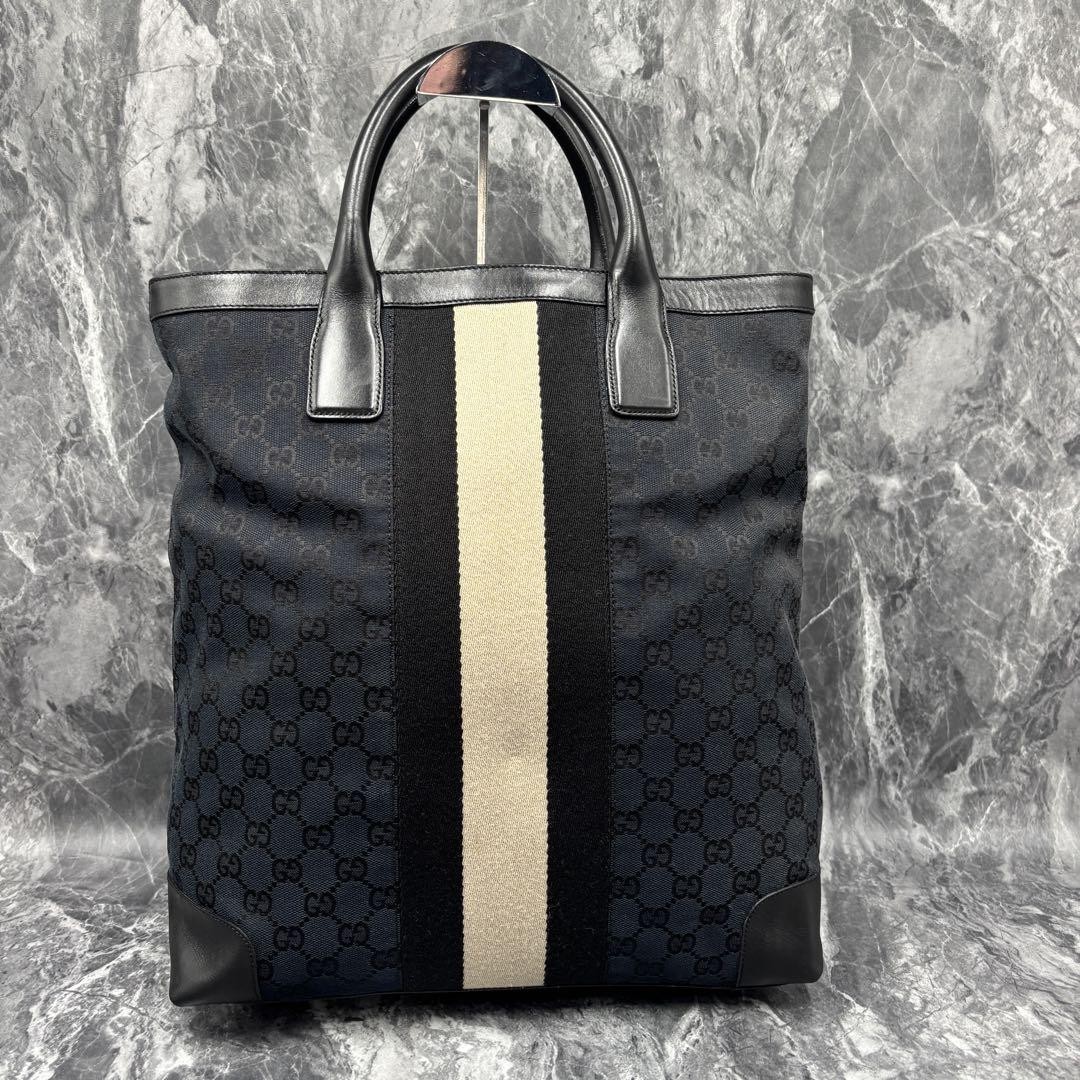$ 258.14GUCCI GG Supreme Sherry Line Navy PVC Handle Bag G0704523 Authentic