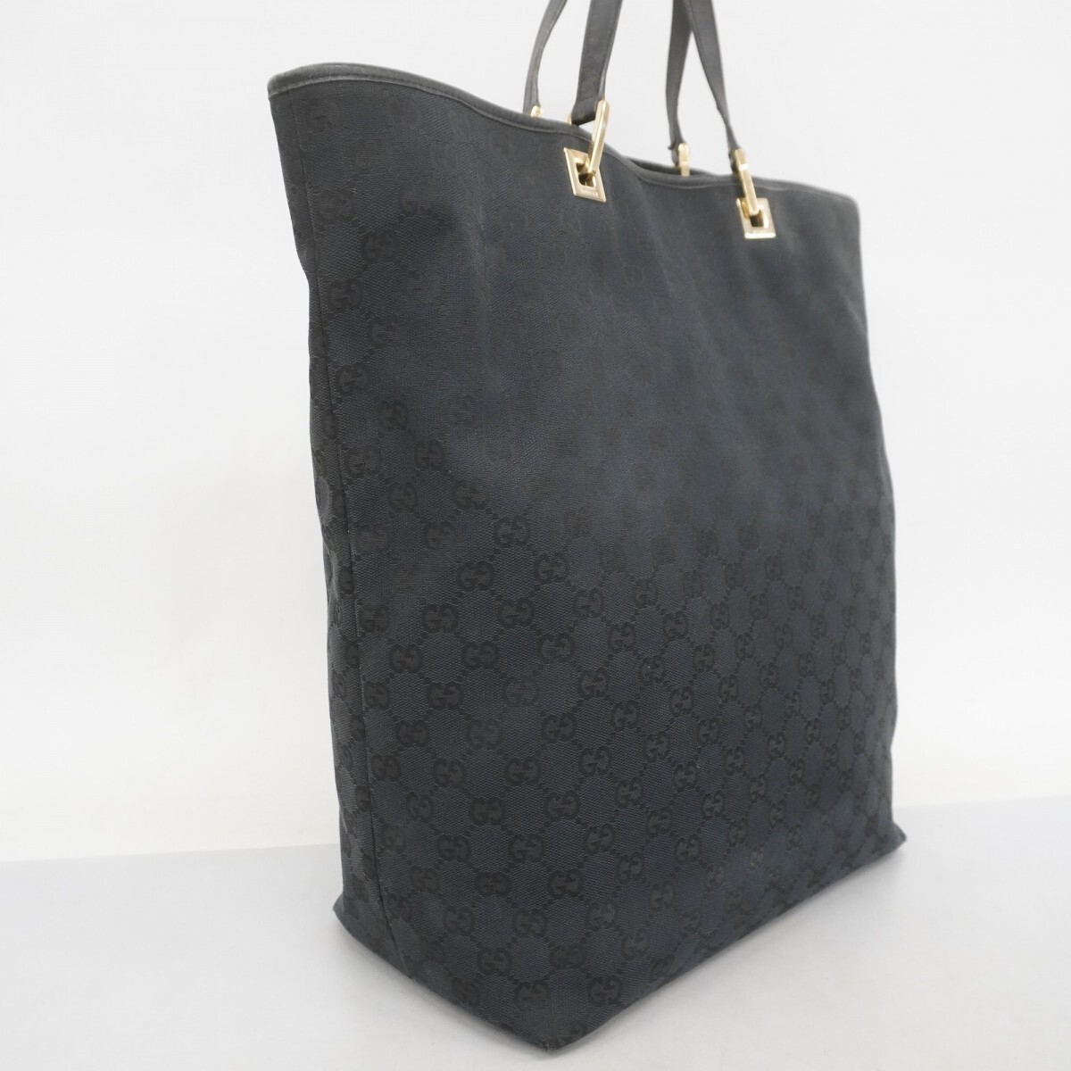 $ 166.32GUCCI GG Canvas Tote Bag in Black with Gold Hardware 393512