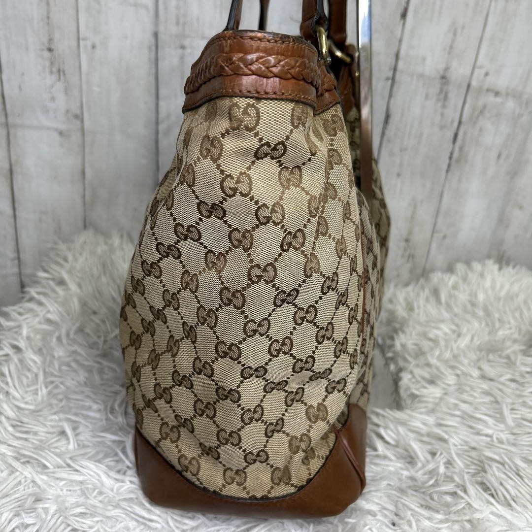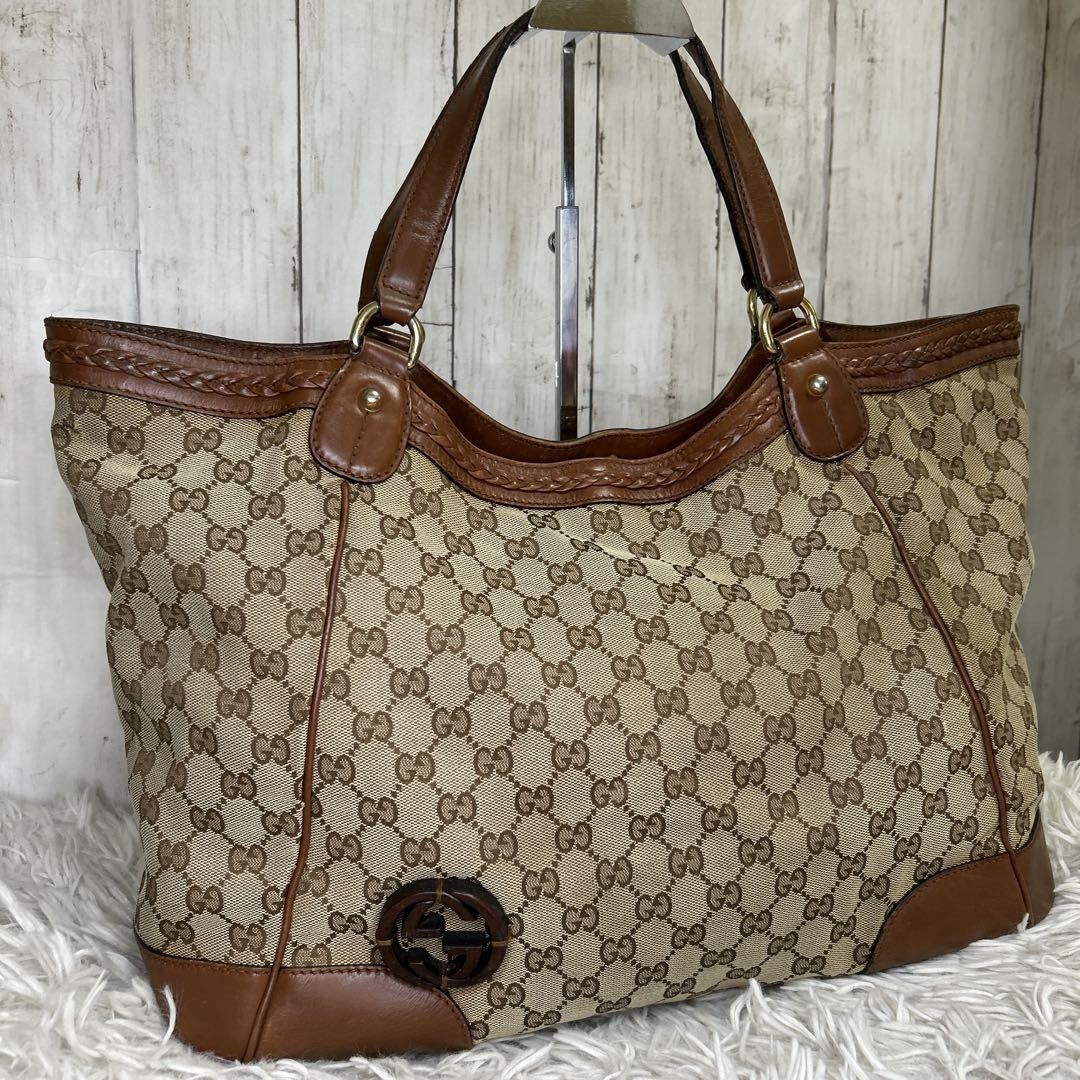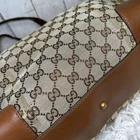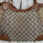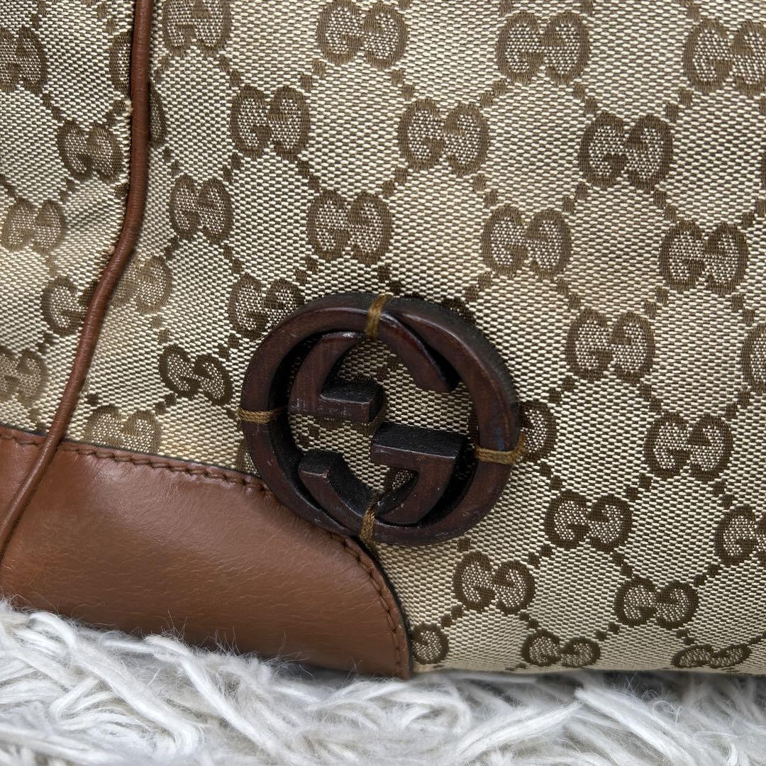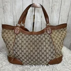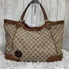 Gucci Jackie GG Brown Leather Tote Bag with Canvas Accents