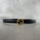$ 63.29GUCCI GG Logo Black Gold Leather Belt with Buckle Authentic Made in Italy