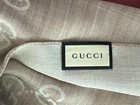 $490.00 MSRP Product Description Style 165904 3G646 9500 Refined with fringe edges, this double jacquard wool-silk scarf features the House's trademark GG pattern, first introduced in the '70s. Product Details Color: Sand Main material contains 70% wool, 30% silk Fringe edges 18.5"W x 70"L Made in Italy Materials & Care Gucci products are made with carefully selected materials. Please handle with care for longer product life. Dry clean only If needed, iron on low temperature to remove any wrinkles or creases Gucci Commitment Gucci upholds the highest international standards of social and environmental responsibility across all its operations. From selecting and tracing raw materials to designing and crafting our products, we prioritize a "circular" approach that maintains our longstanding commitment to unparalleled quality and durability. Through ongoing innovation and optimization of our production processes, we strive to minimize the environmental footprint of our business and the entire supply chain. Our approach involves transforming our sourcing strategy by investing in regenerative agriculture projects for the production of the raw materials used in our collections. To compensate for any remaining emissions from our direct operations and the entire supply chain, we collaborate with different partners, investing in projects focused on conserving nature and restoring biodiversity.