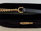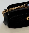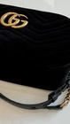 This chic Gucci GG Marmont bag is a must-have! The black velvet is luxe and soft, while the antique gold hardware adds a timeless touch. Perfect size for essentials, and the double G logo gives it that iconic Gucci flair. The pink lining is a cute surprise, and the crossbody strap makes it super versatile. Love it for both day and night—total showstopper!
