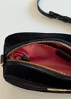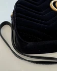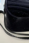 Gucci GG Marmont 447632 Women's Black Matelassé Velvet Mini Shoulder Bag Material: Matelasé Velvet Hardware: Antique Gold Color: Black Sizing: 9"W x 6"H x 3"D Signature Black Matelasé Velvet Double G Logo Front Signature Gucci Antique Gold Hardware Zip Closure Pink Fabric Lining