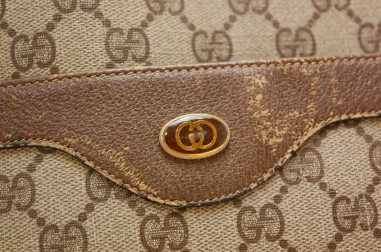 Auth GUCCI GG Sherry Line Shoulder Tote Bag PVC Leather Brown 0721a Auth GUCCI GG Sherry Line Shoulder Tote Bag PVC Leather Brown 0721a Click images to enlarge Description I am licenced dealer with the Japanese Police Department Authorization number : 431220031837 Made in Italy Material: PVC/Leather Size:W12xH15xD3.5 in Strap Drop:10 in Pocket:outsideX1 Come with (none) Condition Outside tears,creases,cracks,scratches,stains. Inside stains.*odor from storage and like perfume(Please understand that senses of smell varies by person). Check out the pictures for more details. Shipping method:by DHL or EMS with tracking number. Usually it takes about 4-7 days to US, 5-10 days to Europe. Shipping cost: Worldwide FREE!! Please purchase with confidence . All my items are guarantee authentic or your money back!! Attention Import duties, taxes and charges are not included in the item price or shipping charges. These charges are the buyer's responsibility. Please check with your country's customs office to determine what these additional costs will be prior to bidding/buying. Please do not hesitate to contact me even if you don’t understand my terms & condition. Return Policy I'll gladly accept returns for any reason within 30-days. Please check the condition and photos carefully before bidding. If you are not completely satisfied with your purchase, Please contact me with any problems or concerns before leaving neutral or negative feedback. I will do my best to make you feel satisfied. ALL ITEMS ARE GUARANTEED AUTHENTIC or MONEY BACK !! Thanks for looking. Get images that make Supersized seem small. Showcase your items with Auctiva's Listing Templates! THE simple solution for eBay sellers. Track Page Views With Auctiva's Counter