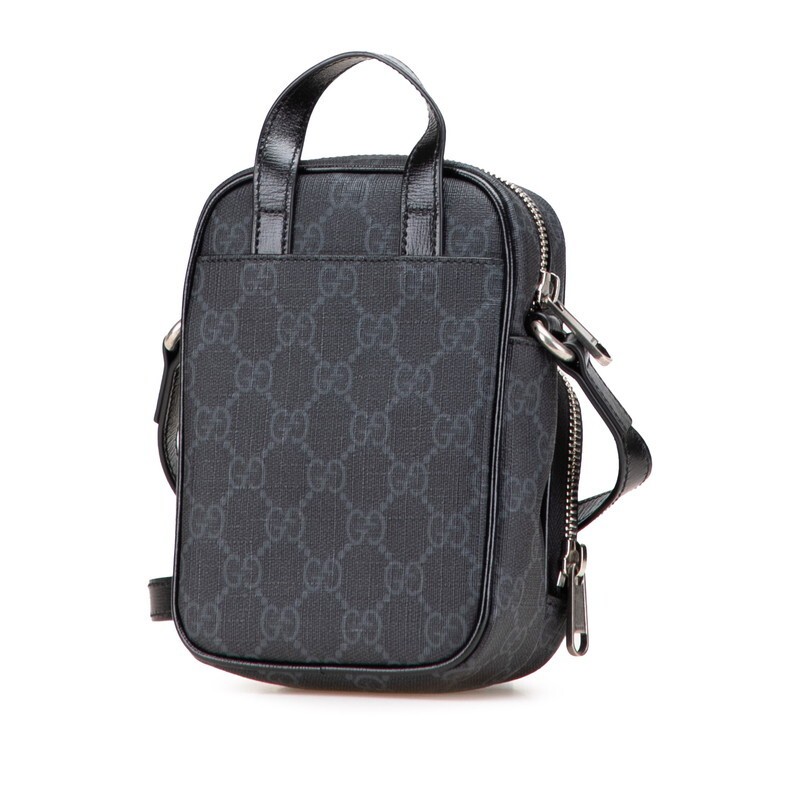 GUCCI GG Supreme Interlocking G Shoulder Bag Black PVC Leather 679373