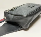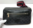 Preowned GUCCI GG Supreme belt Waist Body bag Fanny Pack 474293 canvas Black cross body Good cosmetic condition. The strap shows some fraying from normal use but remains in solid condition. Includes Certificate of Authenticity. W ithout box, dust bag, warranty card, or other accessories. Size: W: 24.5cm / 9.64" H: 14cm / 5.5" D: 5.5cm / 2.16" Belt / about 46" waist.