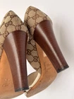 GUCCI Horsebit D'Orsay White Leather Canvas Open-Toe Sandals Size 38 US 7
