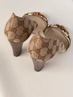 Gucci horsebit accent d'Orsay pumps. Size 38 C. Heels heigth 3,9 in (10 cm). Upper - leather and canvas, lining, insole, sole - leather. Made in Italy. Condition : good, has flaws and traces of using (see photos) Open to your offers Check description and photos very attentively Add your phone number to the shipping info Worldwide delivery 7-25 days. No retuns. If your need any other information about postcage, measurements, photos etc. please contact me. I will be glad to help You!