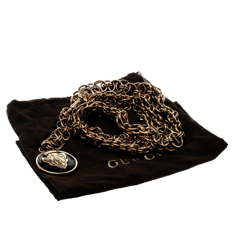 GUCCI Gold Tone Hysteria Runway Belt Featured as a key piece in one of Gucci's most famous runway collections. Gucci double chain link using gold-tone metal and assembled with the brand's signature crest charm and a trigger clasp. This makes you look stunning and looks so pretty in simple dresses or gowns. Made in Italy Size: One size (adjustable) RRP: £920 100% Authentic Guaranteed