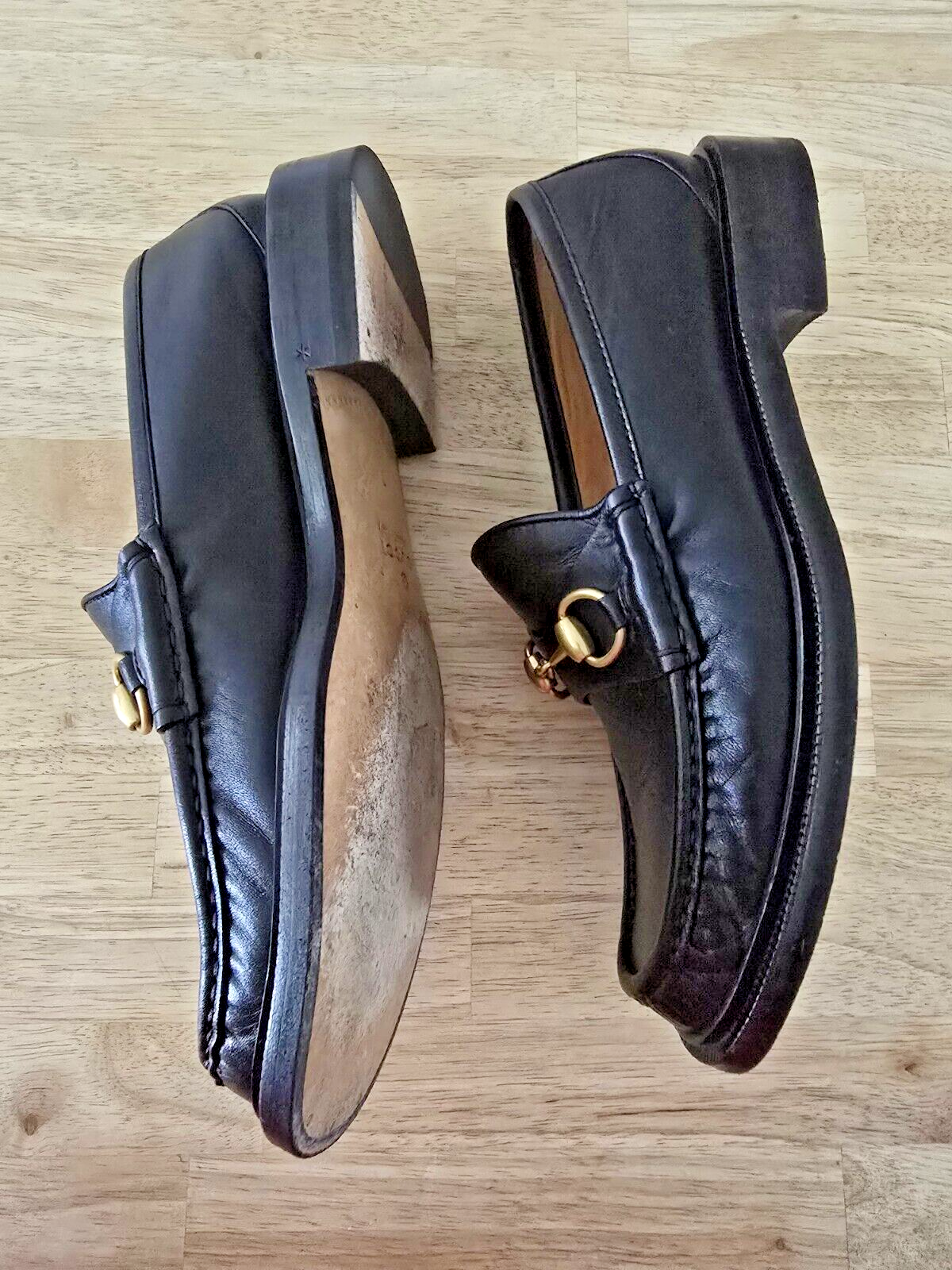 The Gucci Men's Black Leather Horsebit Detail Loafer's Shoes in size 7 are a stylish and versatile addition to any man's wardrobe. Made in Italy with high-quality leather, these slip-on loafers feature an embroidered horsebit detail and Gucci logo accents, adding a touch of luxury to any outfit. The leather lining, insole, and outsole provide comfort and durability, making them suitable for various occasions from casual to workwear. Perfect for travel, activewear, and everyday use, these loafers are a must-have for the fashion-forward man. Purchased in the Gucci store. Have recipets
