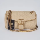 Pixel Safari Fashion eBay Template Free Shipping - 30 Day Return Policy - Guaranteed Authenticity GUCCI Marmont Straw / Snake Luxury Designer Shoulder Bag WITH FREE AUTHENTICITY CHECK Former new price: €2100.00 | Now €1195.00 (-43%) Ask question eBay Store DESCRIPTION DETAILS Luxury Designer Shoulder Bag ·This beautiful rare Marmont shoulder bag by Gucci is handmade from straw in Italy. Features snakeskin leather. Floral leather and nylon lining. The bag is in very clean mint condition with minimal signs of use. Clean inside and out and free of odors. Comes with dust bag and original box. ·· For more details and measurements click on DETAILS button. To see the condition and details correctly, all images are high resolution and enlargable. CONDITION N: New with/without tags A+: Like new, used 1 - 2 times A: Very well preserved, treated with care B: Normal signs of use C: Moderate signs of use D: Significant signs of use* E: Needs Repair / Scrap* AUTHENTICITY GUARANTEE We authenticate our products with great care and we also work with independent authenticators. We guarantee the authenticity of our products. If you receive an authentic product from us, we will refund 120% of the purchase price. Differential taxation according to § 25a UStG. Therefore no VAT identification on the invoice. The pictures are part of the item description. All company and brand names given here as well as images, trademarks and figures are the property of their owners and are used only for identification and description of the products. Bag for Ladies Datacode 443497 520981 Style Shoulder Bag Material Straw Lining Leather + Polyester Color: Beige Closure Pushlock Interior pocket one + 1 compartment with zip Accessories Dust Bag Size Mini Height 18cm Length 26cm Width 7cm Handle drop 56cm Handmade YES Vintage NO Made in Italy Shipping Free shipping takes place within 1 business day by insured DHL Parcel. Collection from our shop in Munich during opening hours. Payment We accept the following payment methods: Bank transfer (prepayment in advance) Paypal Credit Card Cash on site Return You have the right to cancel this contract within 30 days without giving any reason. Design & Development by Pixel Safari wonderlustking*emporium https://www.ebay.com/str/wonderlustkingemporium #1e1879 fashiontemplate 160