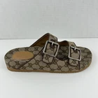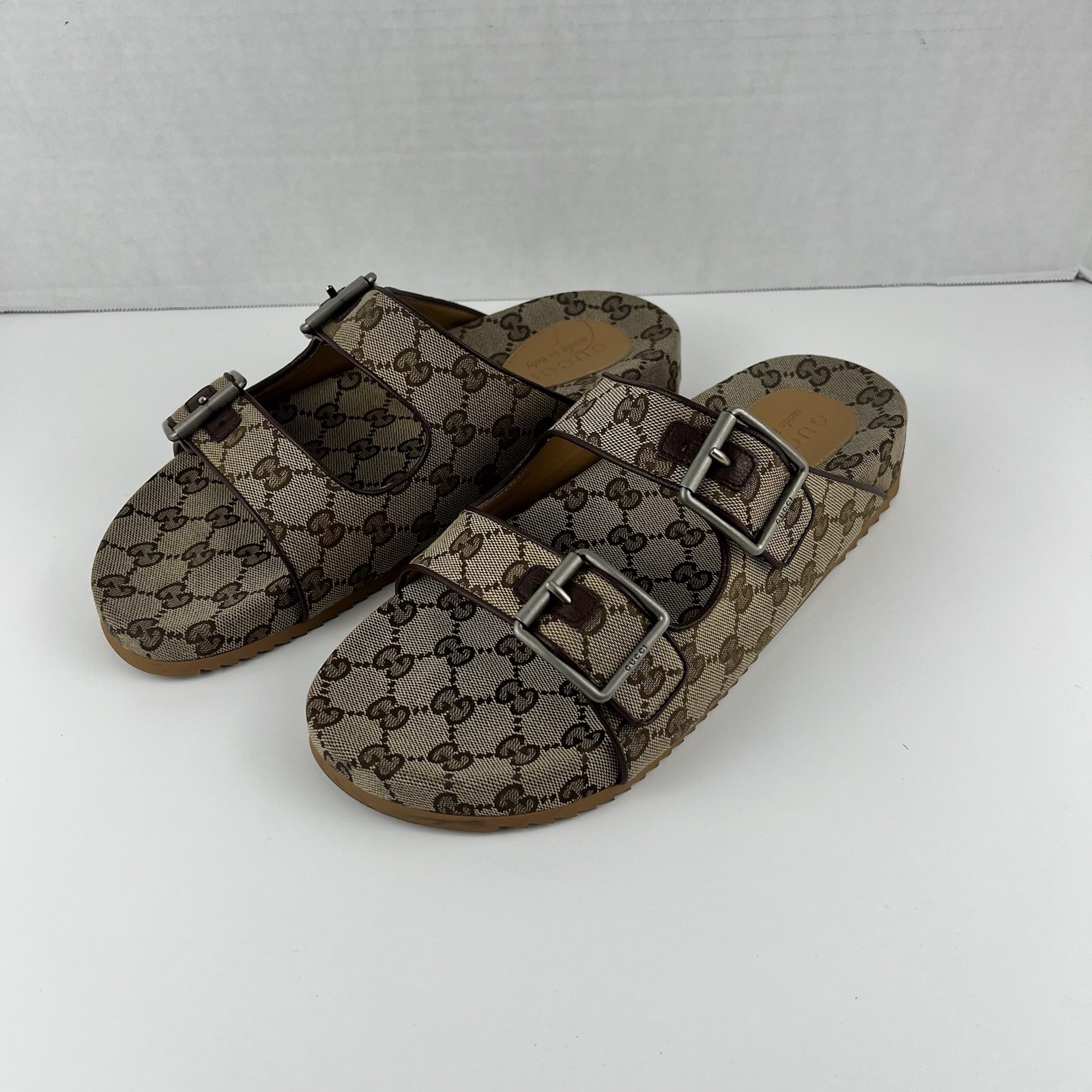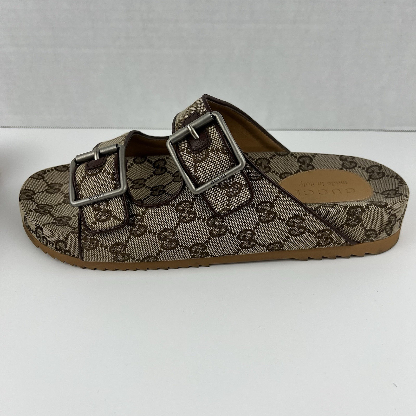 GUCCI Men's GG Canvas Slide Sandal With Straps - Beige/Ebony US 9.0 Sandals where used a couple times. They are in excellent condition. Comes with original box and receipt from store.