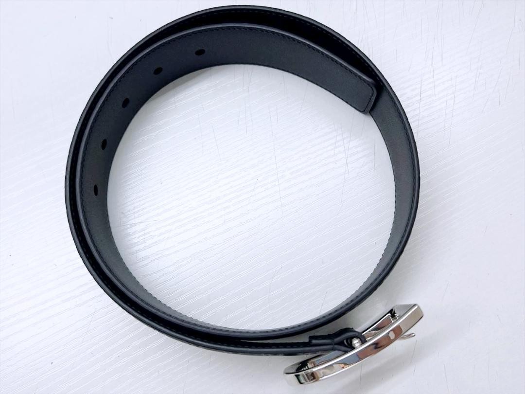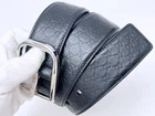 GUCCI Microshima Leather Belt 75mm Black Gold Buckle 449716 DDU