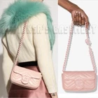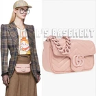 GUCCI Mini GG MARMONT Matelasse leather chain Shoulder Convertible 95 Belt Bag NIB NWT Authentic $2,380! Brand New Authentic Gucci Mini GG MARMONT Matelasse pink leather chain Shoulder Convertible to size 95 Belt Bag New In Box RP: $2,380 Style 699757 UM8KV 5909 Made in Italy Length: 6.5 in Height: 4 in Width: 2 in This item can be worn as a belt or shoulder bag Size 95 that would fit up to 39" circumference/length Perfect pink calfskin leather quilted in chevron pattern Adjustable ceramic-effect pink chain belt strap with GG logo on one end and hook on the other Microfiber lining with suede-like finish Double G pink resin logo on the front Snap flap closure One open compartment Tarnished silver-tone detachable toggle clasp key ring on the inside Leather patch with serial number embossed inside Fits up to iPhone Pro, card case, and lipstick Comes with Gucci box, dust bag and Gucci care booklet Brand new with tags. Originally sold for $2380 !!! You'll love it!