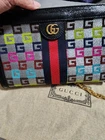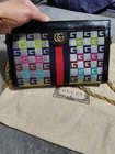 The GUCCI Ophidia Limited Edition Bag in multicolor is a stylish and luxurious accessory for women. With a small size and crossbody style, this bag features a zip closure and gold hardware accents. Made from a combination of canvas and leather, this bag exudes sophistication and elegance. The exterior color in beige adds a touch of sophistication, while the original dust bag ensures authenticity. Made in Italy by the prestigious brand Gucci, this limited edition bag is a must-have addition to any fashion-forward wardrobe.