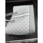 The Ophidia line is further elevated through new sizes and styles, including variations with top handles as well as shoulder straps, allowing for versatile wear. The signature Double G hardware completes this dusty blue GG Supreme design. - Dusty blue GG Supreme canvas - Dusty blue leather trim - Light gold-toned hardware - Dusty blue and light blue Web stripe - Brown cotton linen lining - Double G - Top handle with 4.7" drop - Shoulder strap with 11.2" drop - 12.2"W x 9.8"H x 5.1"D - Weight: 1.3lbs approximately - Made in Italy - Fits up to: iPhone Pro Max/Plus, Airpods, long wallet, and lipstick Product