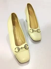 GUCCI PATENT LEATHER BLOCK HEELS PUMPS SIZE, EU38,US8, IS IN USED CONDITION, > INNER SIGN OF USE, > DOWN SIDE THE SOLE USED MARKS, > BOTH TOES HAVE LITTLE SCRATCHES SHOWING IN PICTURE NUMBER 20, > ONE HEEL LEATHER HAS MINOR TAKEN OUT SHOWING IN PICTURE NUMBER 11, > DUE TO USE BESIDE THE SHOES PATENT LEATHER LITTILE LINING IS SHOWING CAN SEE IN PICTURE NUMBER 12, 13, 14, 15 & 20, >ON ONE BACK SIDE THE HEELS MINOR PATENT LEATHER COLOUR HAS COME OFF SHOWING IN PICTURE NUMBER 22, > REQUESTED TO SEE ALL PICTURES VERY CAREFULLY BEFORE THE BUYING CONDITION IS CLEARY SHOWING IN ALL PICTURES, > IF HAVE ANY QUESTIONS TO ASK THEN FREELY MESSAGE ME IN INBOX FOR ANY ASSITANCE, > NO RETURN IS ACCEPTABLE, > NO DUST BAG AND BOX WITH THIS ITEM, > SHIPPED WITH DHL INTERNATIONAL EXPRESS FASTER SERVICE, NOTE : The Buyer is responsible for paying All import taxes and duties on international shipments.