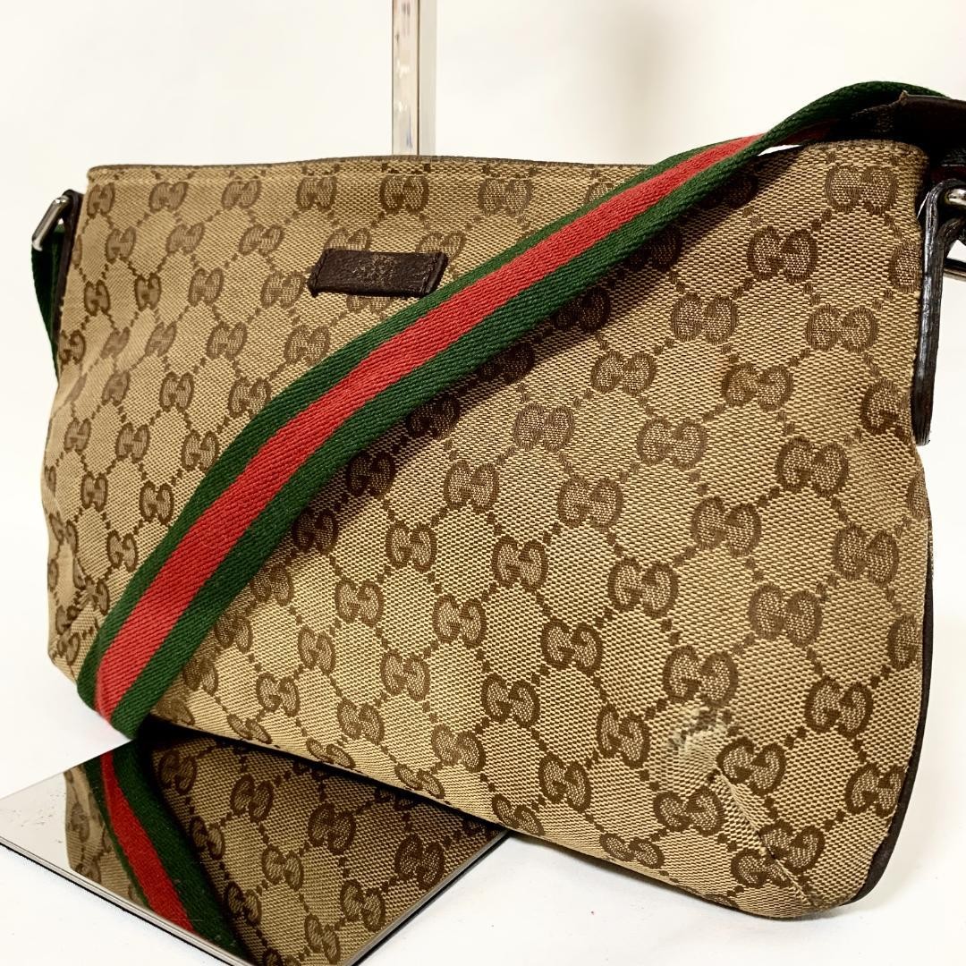 GUCCI Gray Leather Canvas One Shoulder Bag DDU