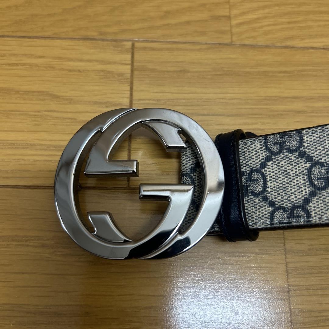 GUCCI Shima GG Buckle Leather Belt 85mm 34 Black 114984 DDU