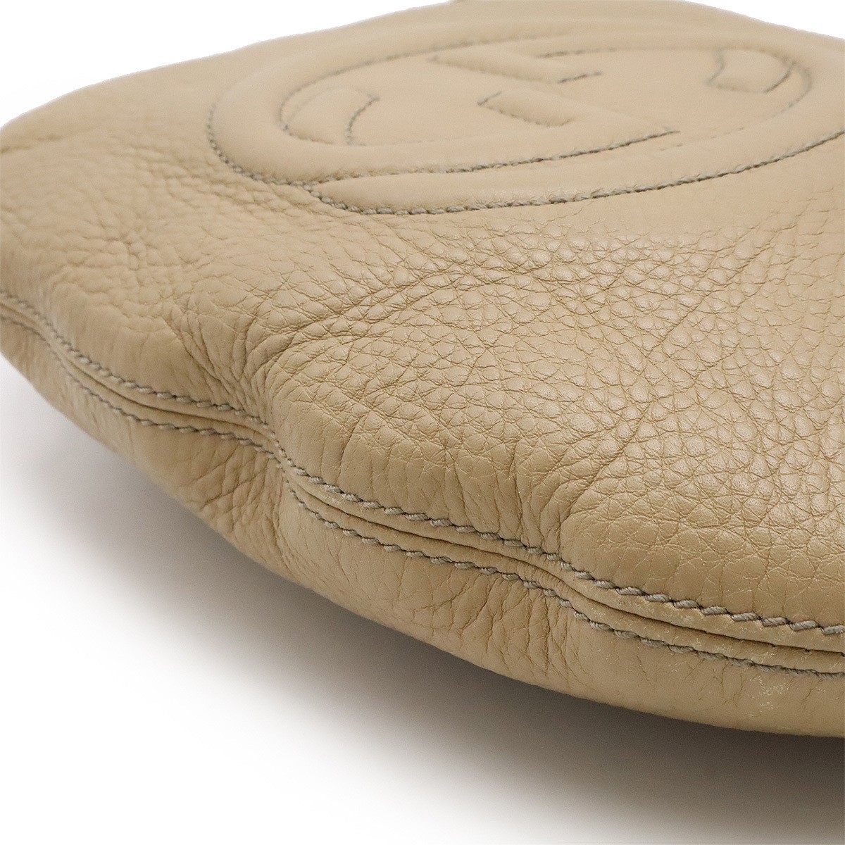 GUCCI Soho Interlocking G Fringe Tassel Shoulder Bag Crossbody Leather Beige Gol